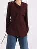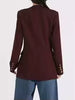 Sophisticated blazer dress designed with a clean asymmetric wrap front and sharp tailored lines. Crafted in a rich maroon tone with a sculpted waist and refined structure, this piece delivers modern elegance—perfect for business-chic looks or polished evening styling.
