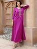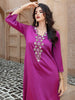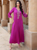 Shine bright in this purple A-line dress, featuring intricate front embroidery and elegant wide sleeves. An elegant and attractive piece, it's perfect for festive gatherings and evening events.