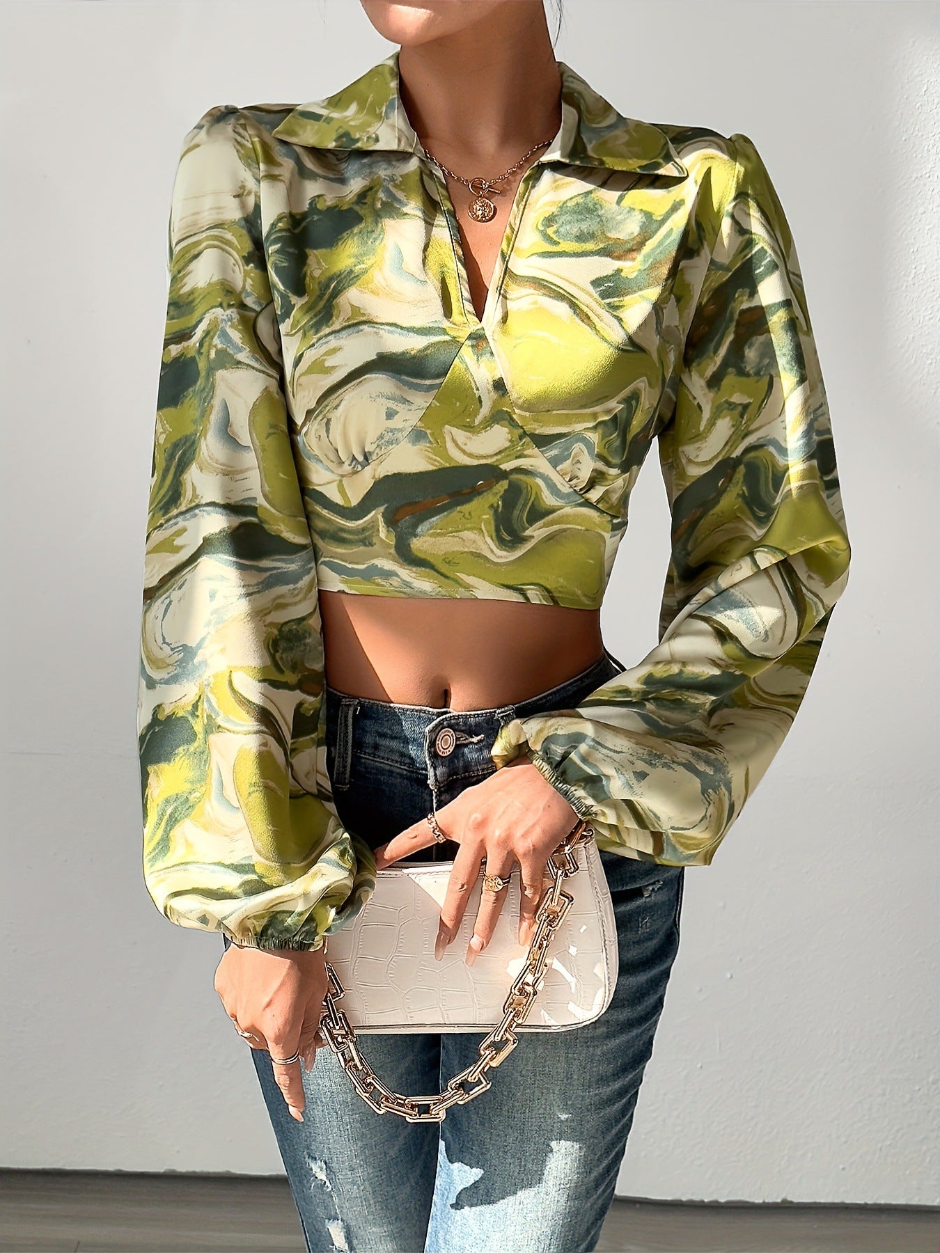 cropped wrap blouse with marbled print – OLIVEA – missodd.com