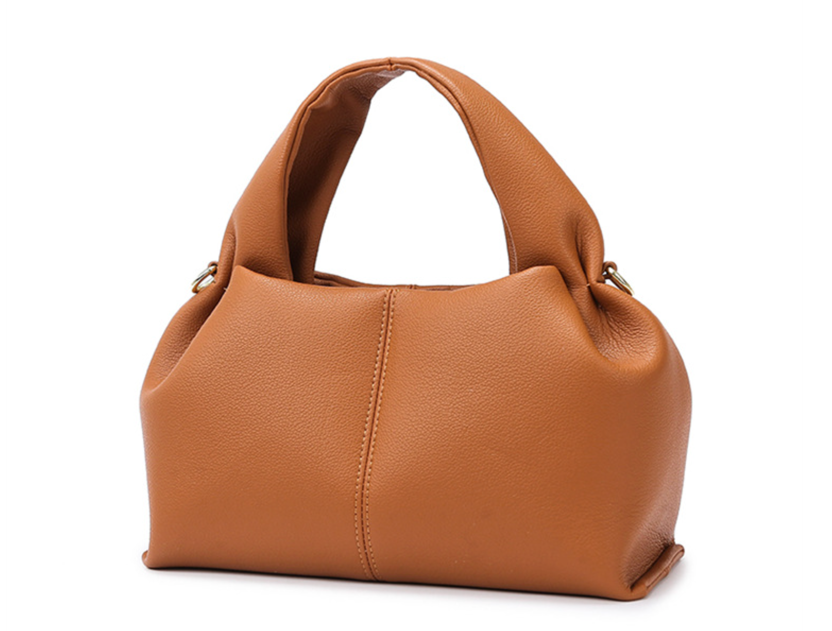 A refined hobo-style handbag crafted from supple leather in an elegant taupe tone. Designed with a softly structured silhouette, padded top handle, and adjustable shoulder strap, this bag offers effortless versatility for shoulder, crossbody, or hand carry. Spacious yet sleek, it’s perfect for daily essentials while maintaining a polished, modern look—ideal for both casual wear and elevated styling.