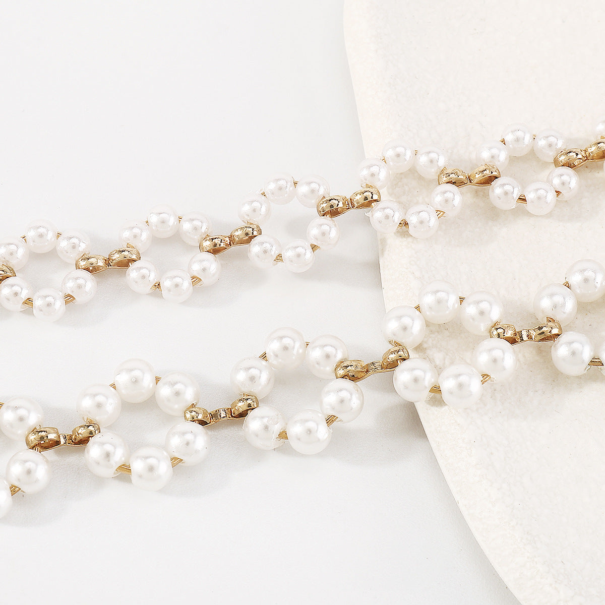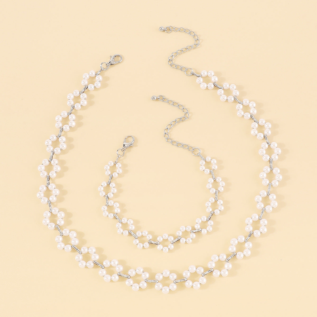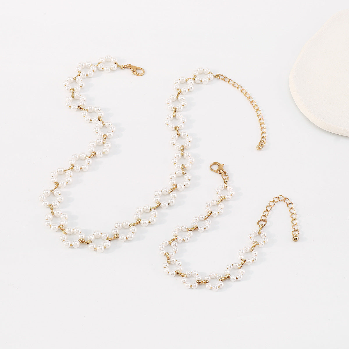 Elegant two-piece set featuring a delicate pearl choker and matching bracelet, beautifully intertwined with gold-toned accents for a timeless and sophisticated look. Perfect for evening wear or special occasions.