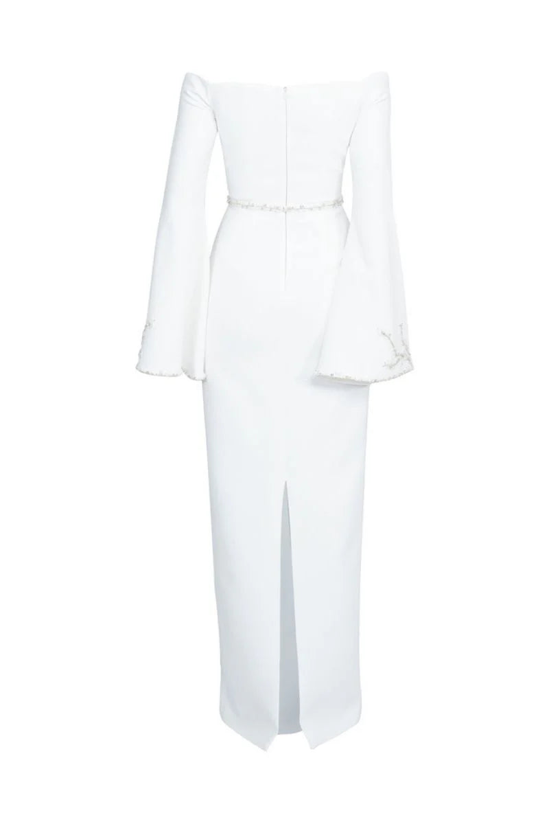 off-shoulder column gown with flared embellished sleeves – IVORYE – missodd.com