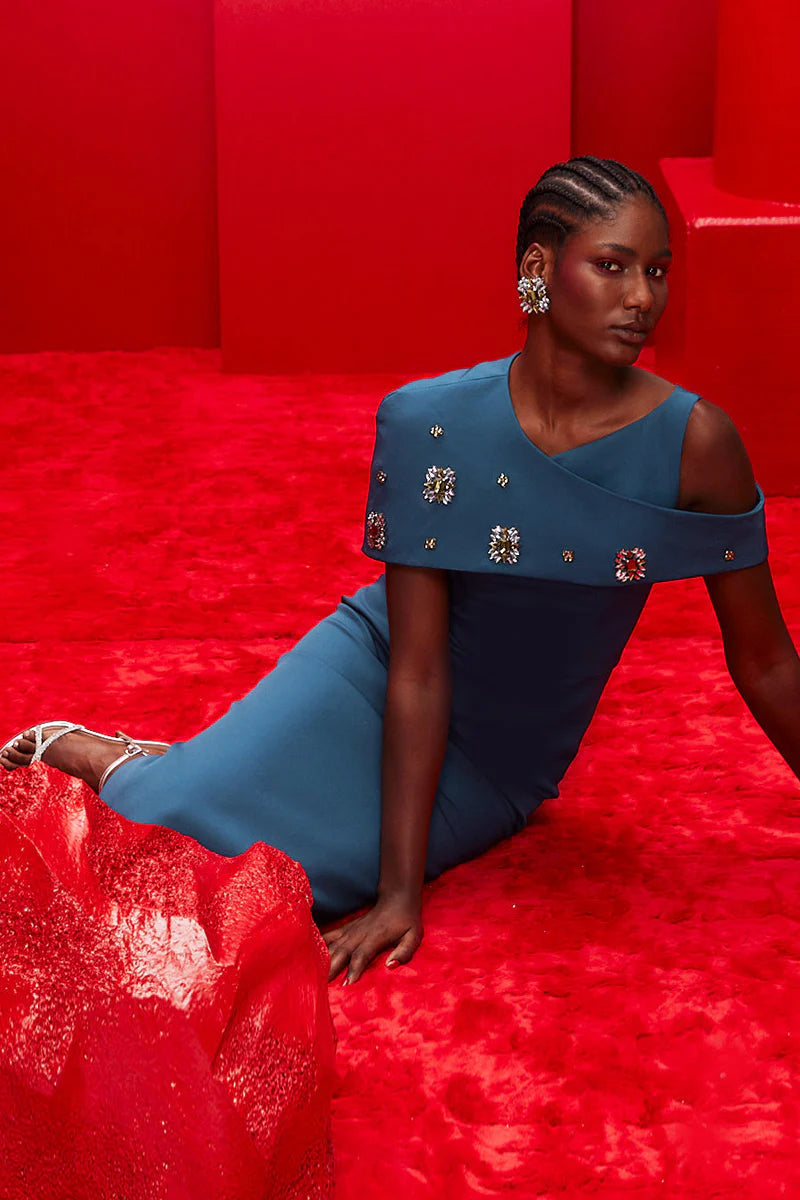 one-shoulder column gown with embellished cape overlay – AZUREH