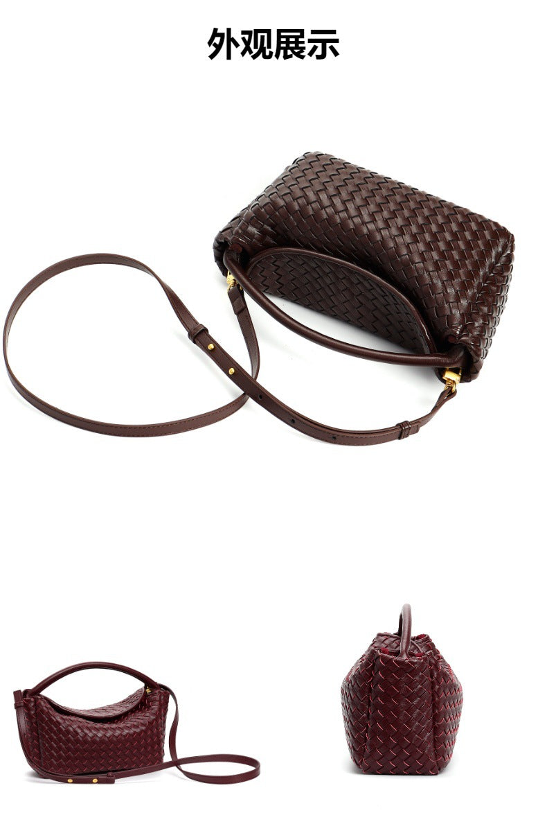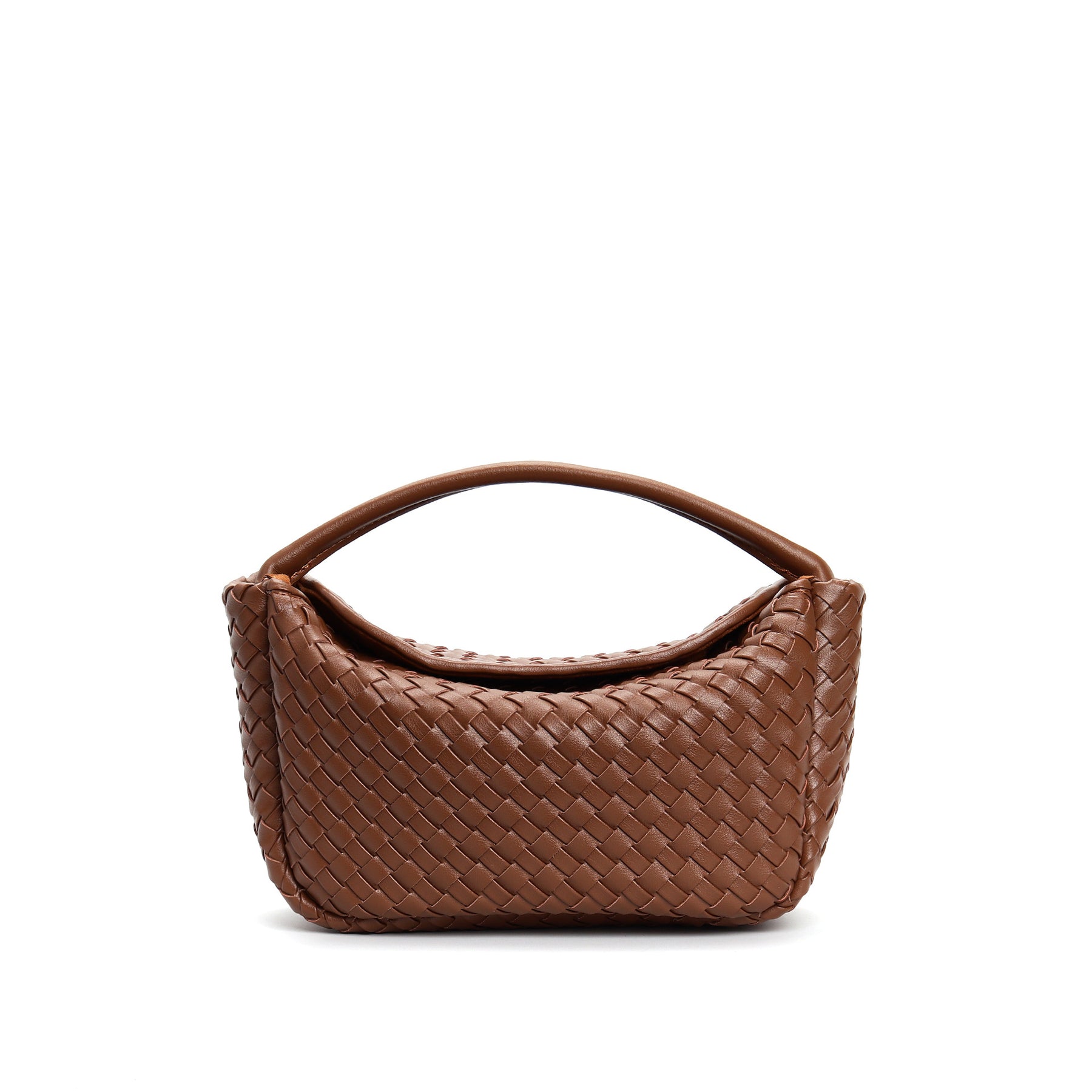 Sculptural sans effort, ce sac tissé noir et blanc présente une silhouette incurvée, des poignées supérieures structurées et un passepoil noir élégant. Un compagnon léger mais audacieux pour vos essentiels quotidiens.