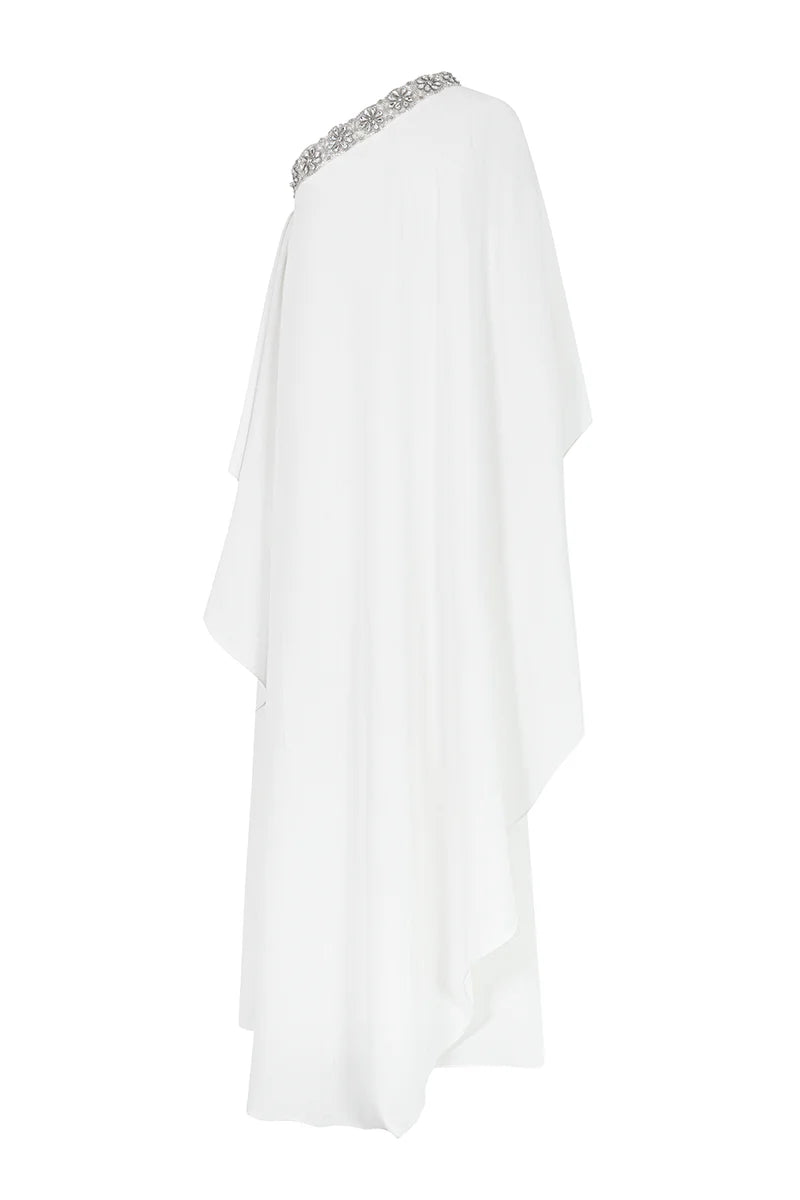 one-shoulder cape gown with jeweled neckline – IVORYE – missodd.com
