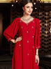 costume évasé sur mesure avec manches bouffantes en satin – VALENCIA