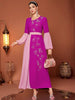 Embroidered Color-Block Maxi Dress with Chiffon Sleeves – VIOLETTE