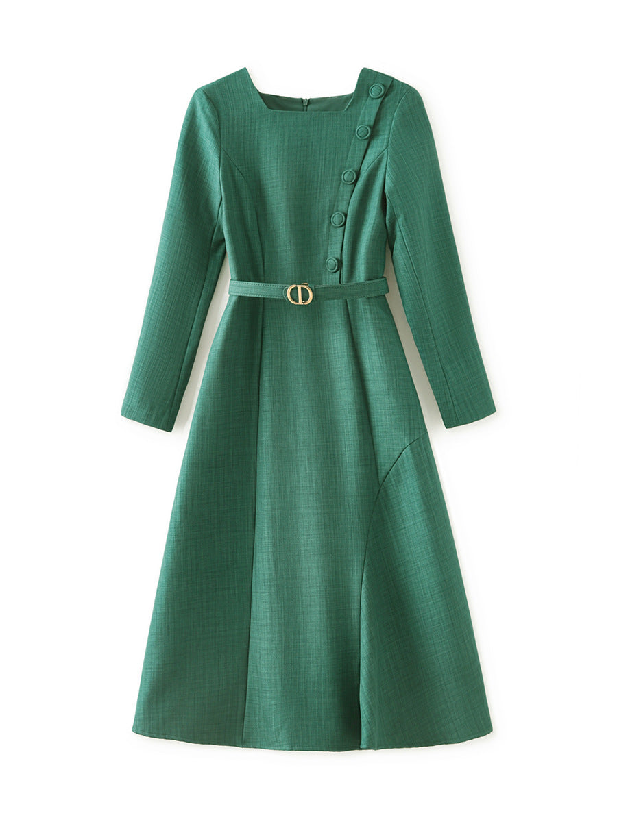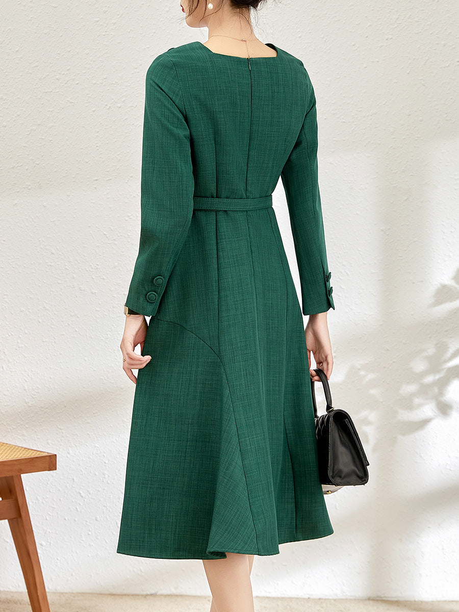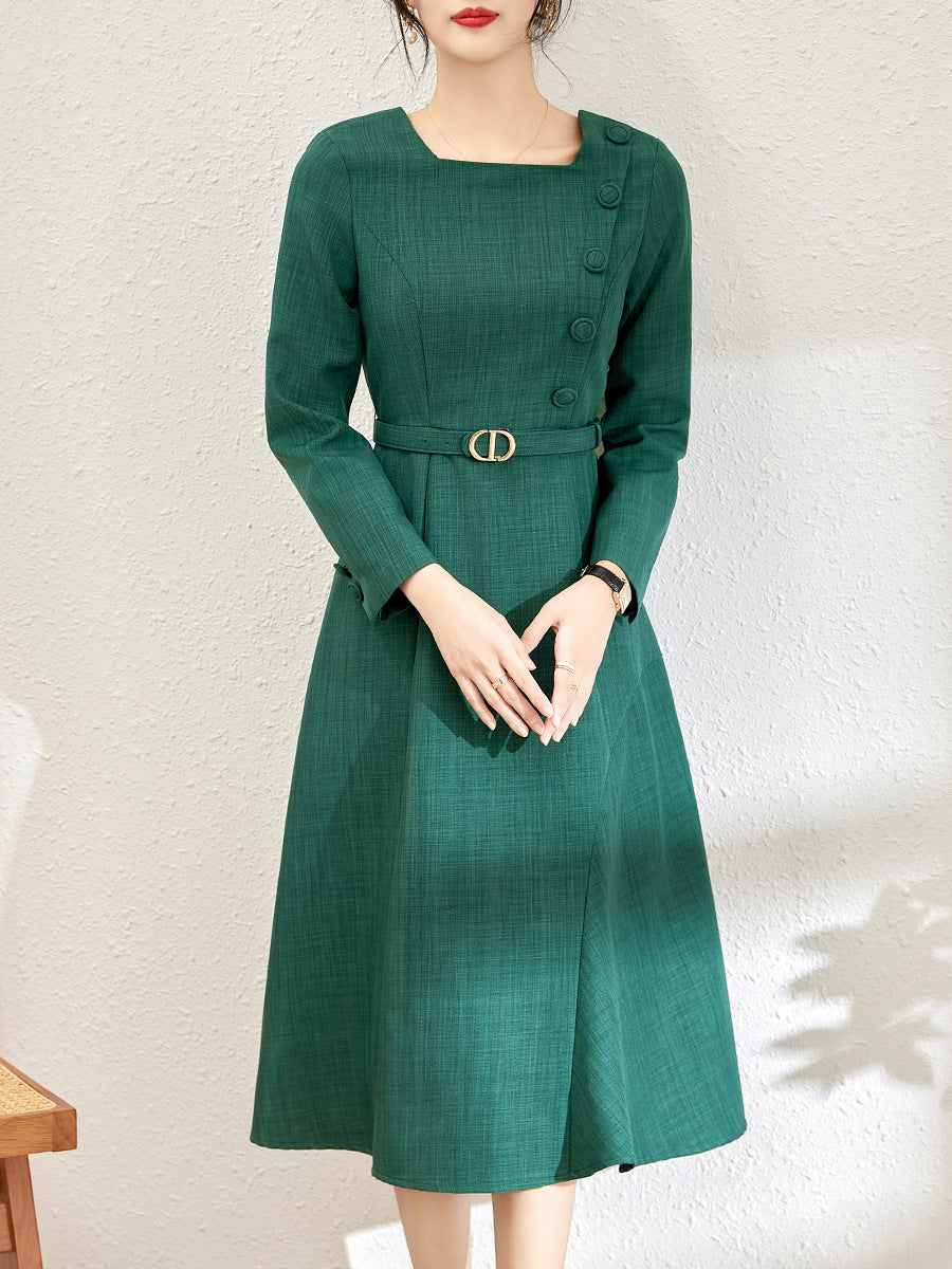 Cette robe midi élégante et féminine présente un corsage en soie avec des manches longues et une jupe douce à fleurs. La ceinture à la taille ajoute une touche distinctive, la rendant parfaite.