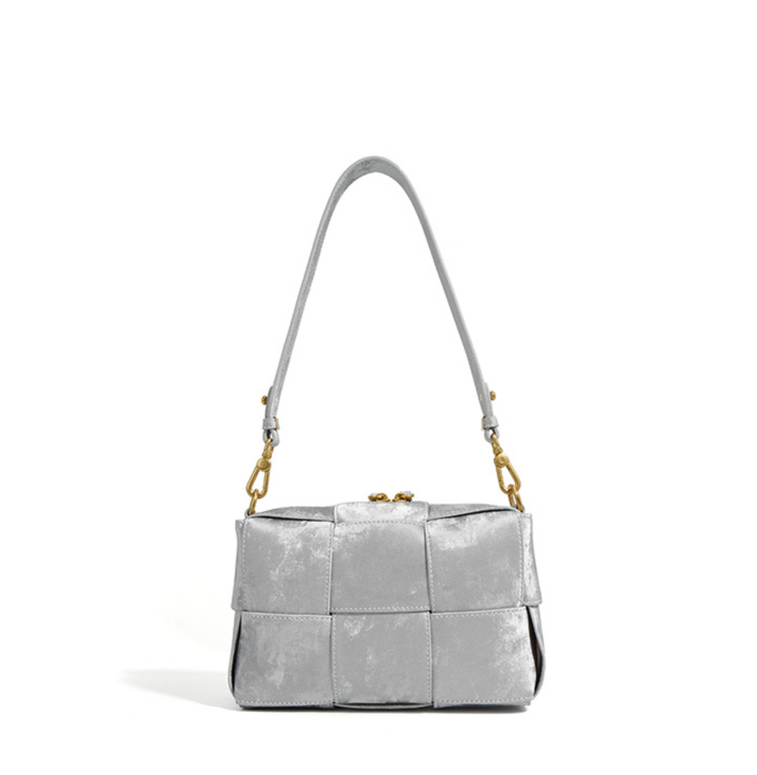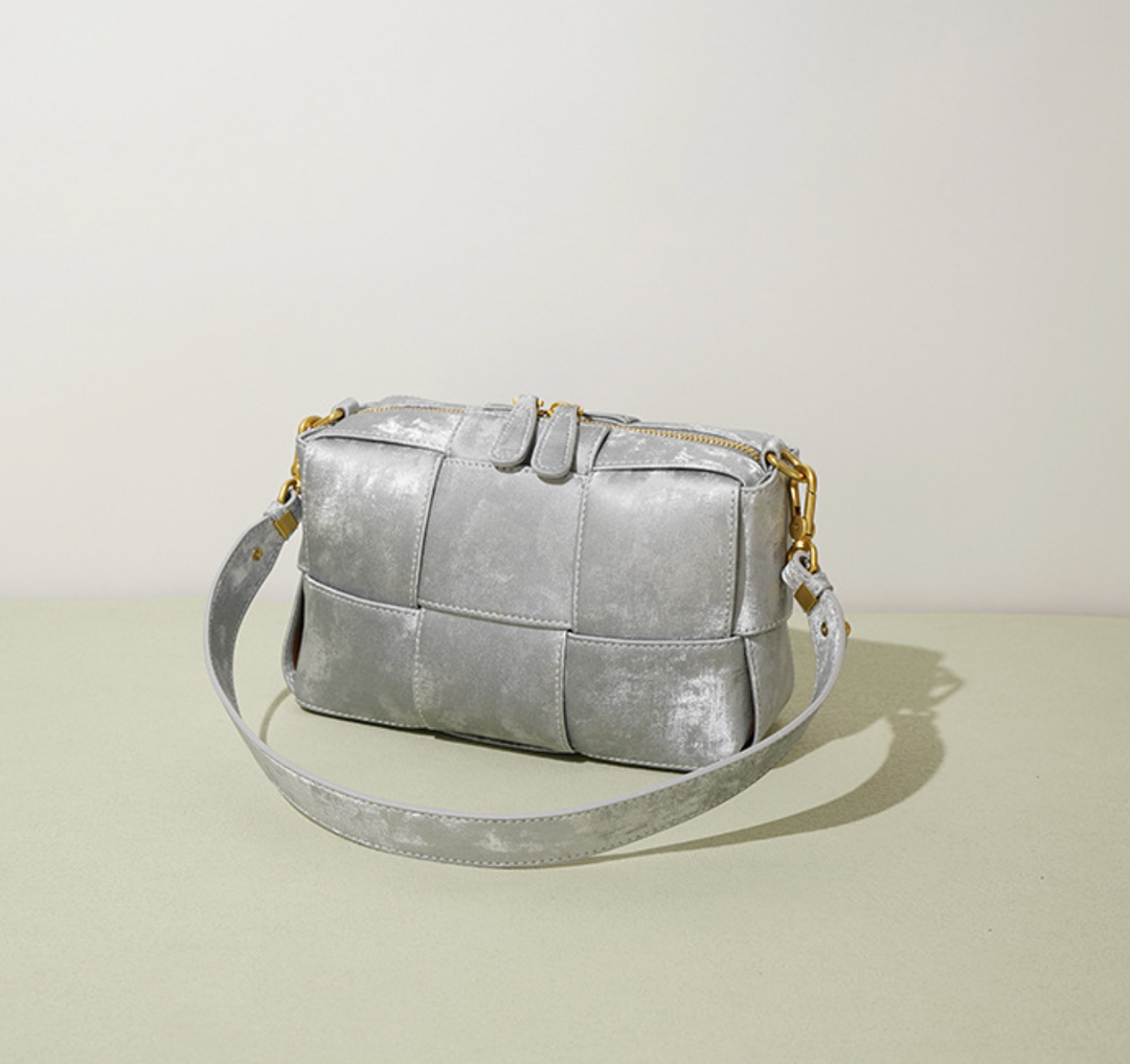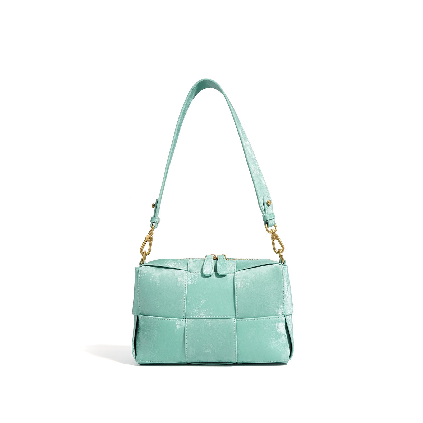 Un sac seau vert menthe élégant avec une silhouette structurée, des poignées doubles sur le dessus et des cordons de serrage modernes avec embouts métalliques. Équilibre parfaitement douceur et caractère pour une déclaration polie et quotidienne.