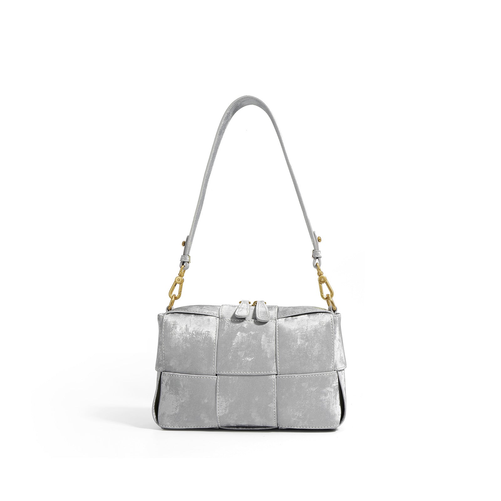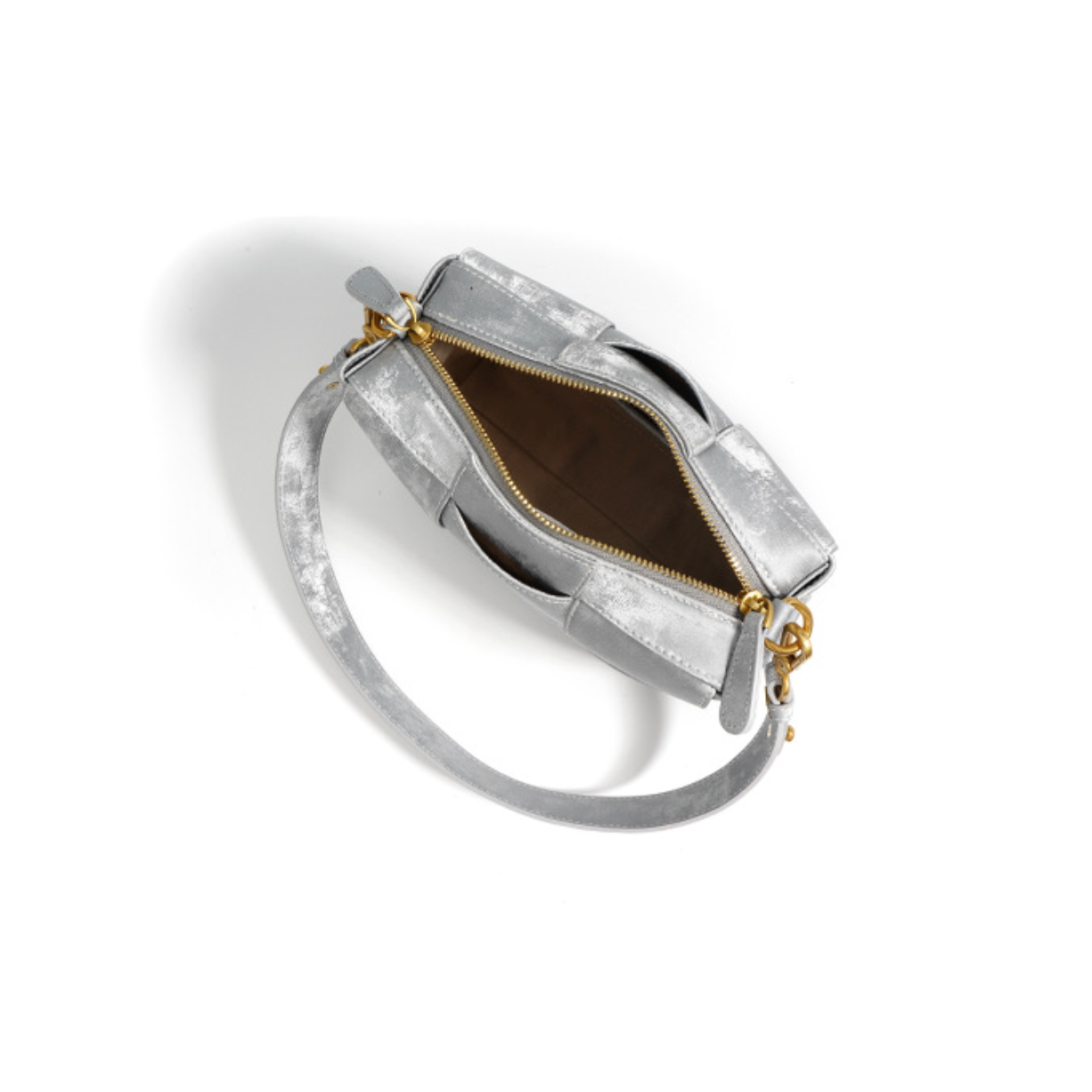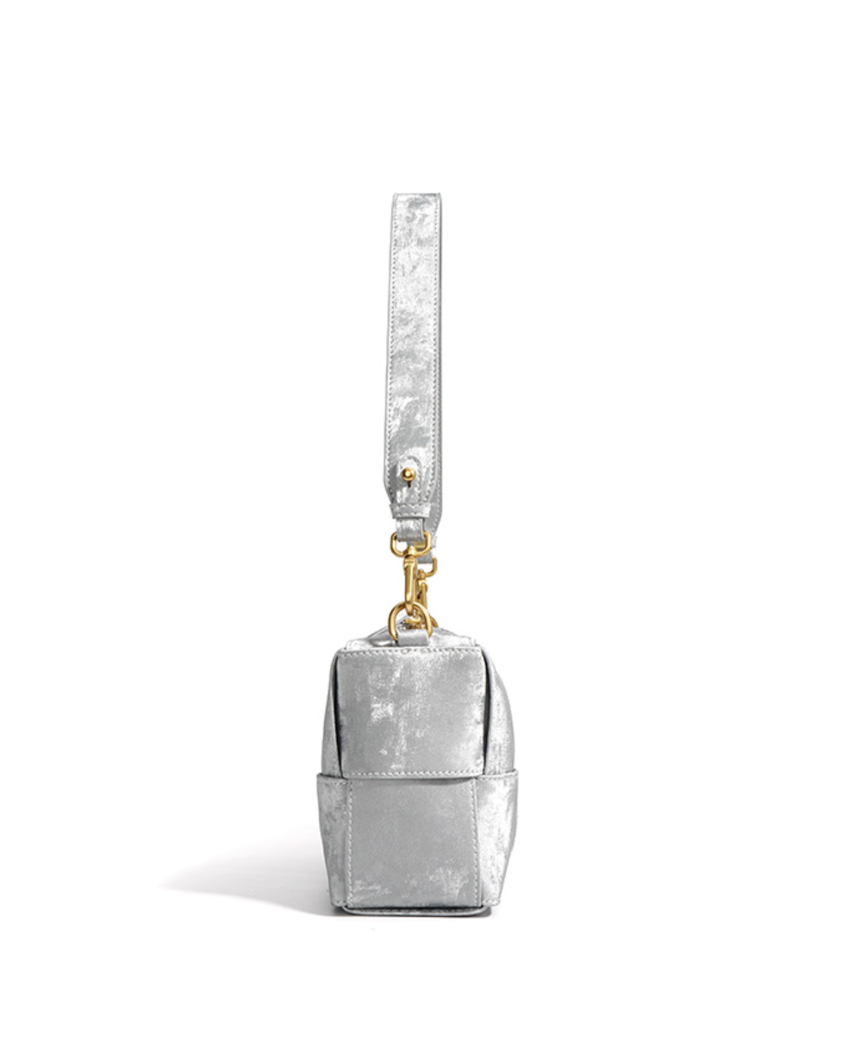 Un sac seau vert menthe élégant avec une silhouette structurée, des poignées doubles sur le dessus et des cordons de serrage modernes avec embouts métalliques. Équilibre parfaitement douceur et caractère pour une déclaration polie et quotidienne.