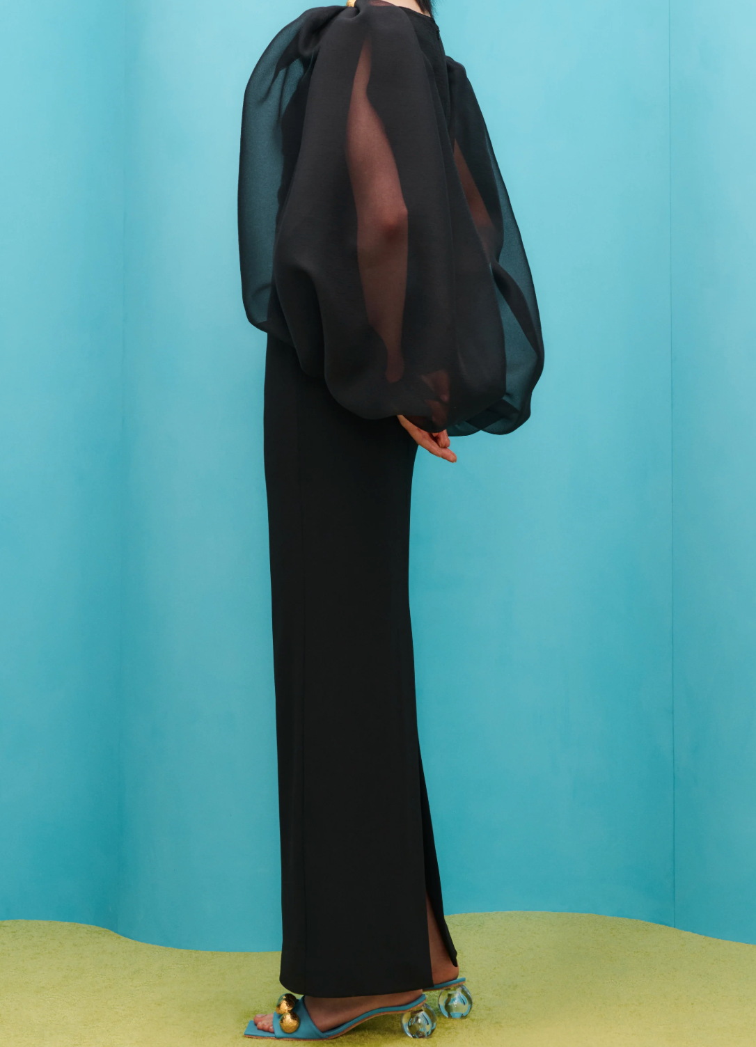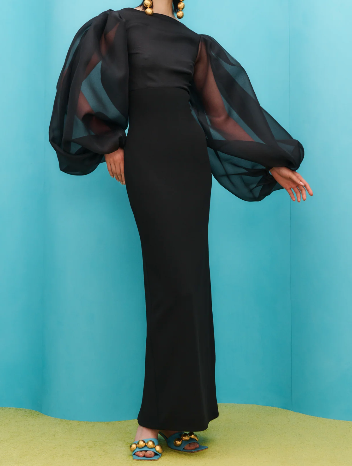sheer balloon-sleeve fitted column gown – NOIRA – missodd.com