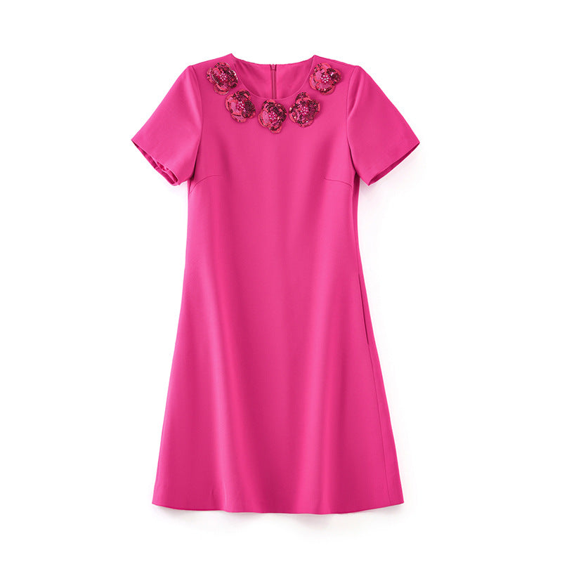 robe cache-cœur à manches trois-quarts avec revers à sequins et appliqué floral – ALINA