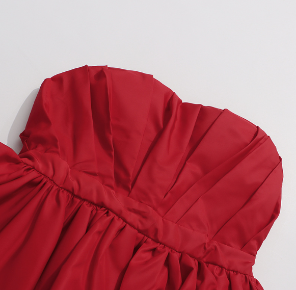 A bold strapless top designed with a structured corset bodice and dramatic peplum volume that flares elegantly at the waist. Crafted in a striking red tone, this piece delivers confident femininity and modern glamour—perfect for statement evenings and elevated styling.