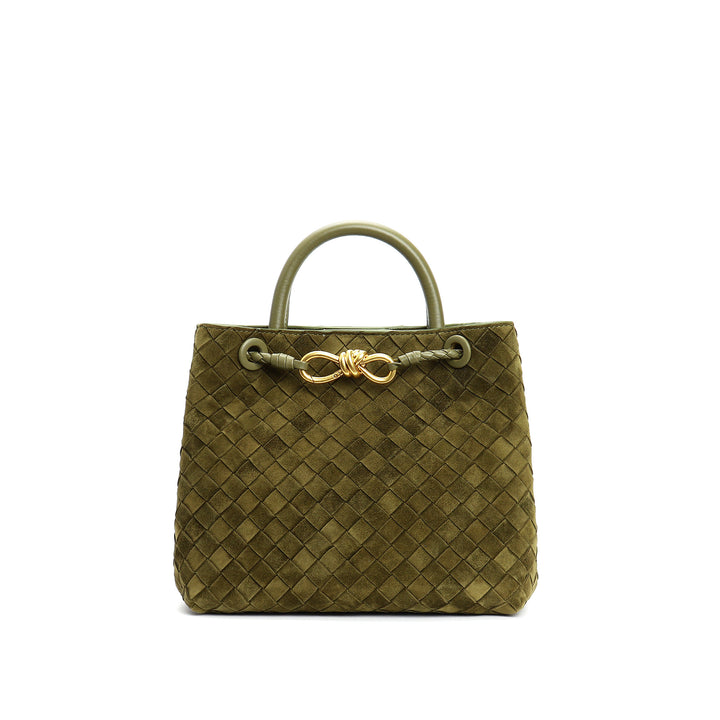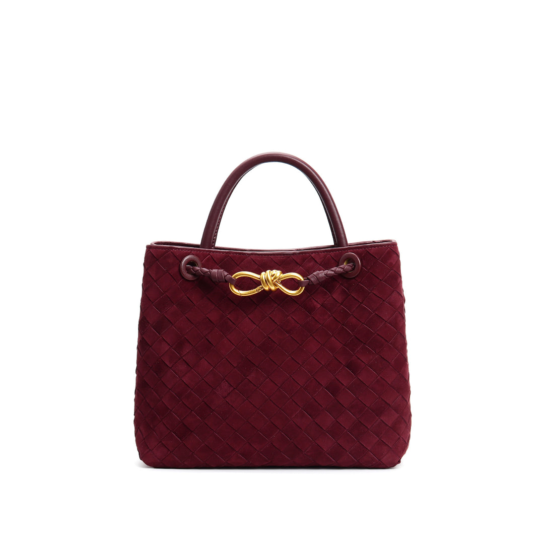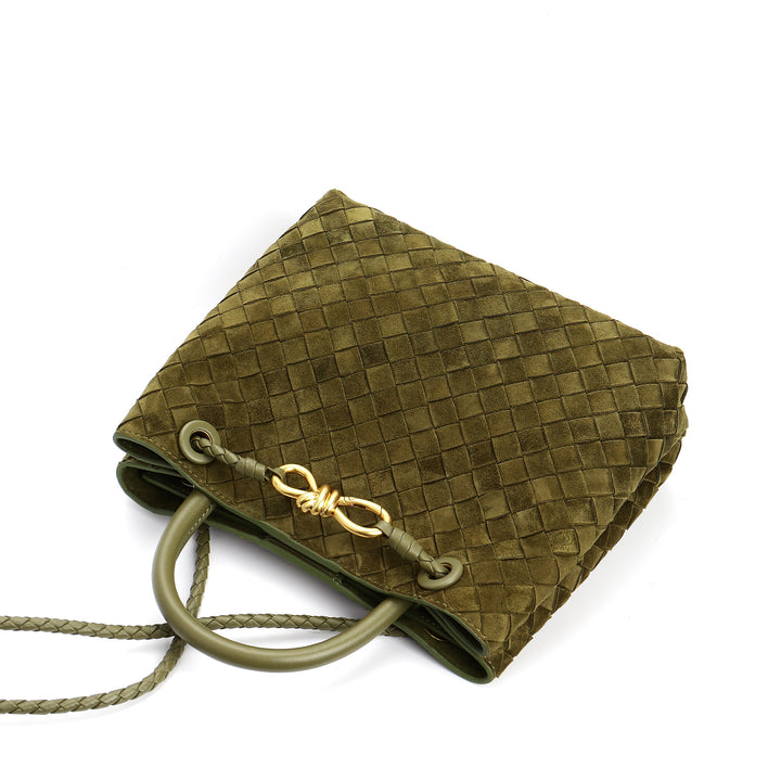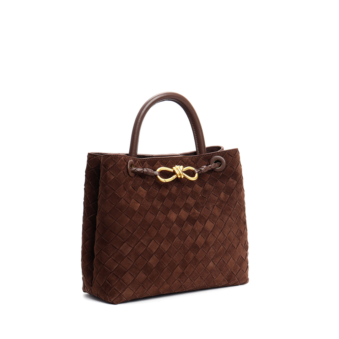 Sculptural sans effort, ce sac tissé noir et blanc présente une silhouette incurvée, des poignées supérieures structurées et un passepoil noir élégant. Un compagnon léger mais audacieux pour vos essentiels quotidiens.