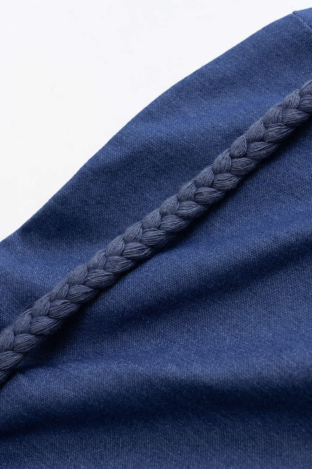 Denim Tube Top And Ruched Tie Front Pocket Wide Leg Jeans Set