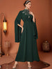 Attirez l'attention dans ce costume rouge flamboyant avec un blazer asymétrique sculpté, un pantalon évasé à jambes larges et une broche dramatique en plumes sur l'épaule. Une déclaration audacieuse pour les galas, les dîners formels ou les moments sur le tapis rouge.