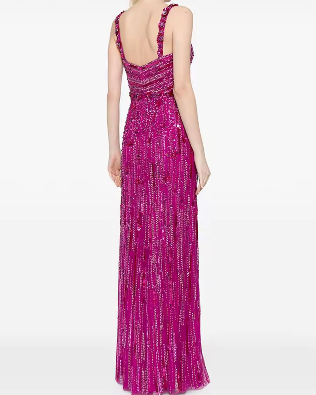 Une robe midi sophistiquée en velours marine avec un corsage drapé en sequins et un col à revers ajusté. Avec des manches trois-quarts et une silhouette structurée, cette pièce équilibre le charme classique avec le glamour moderne—parfaite pour les soirées cocktails et les occasions élégantes.
