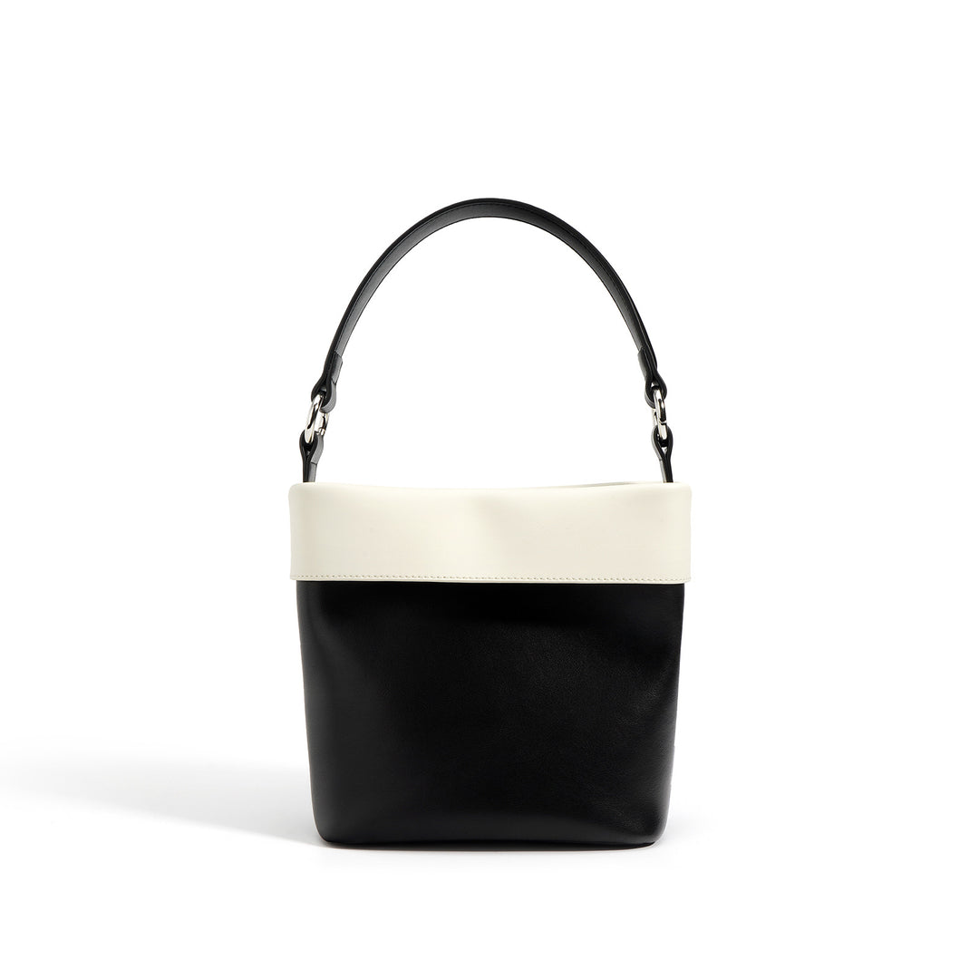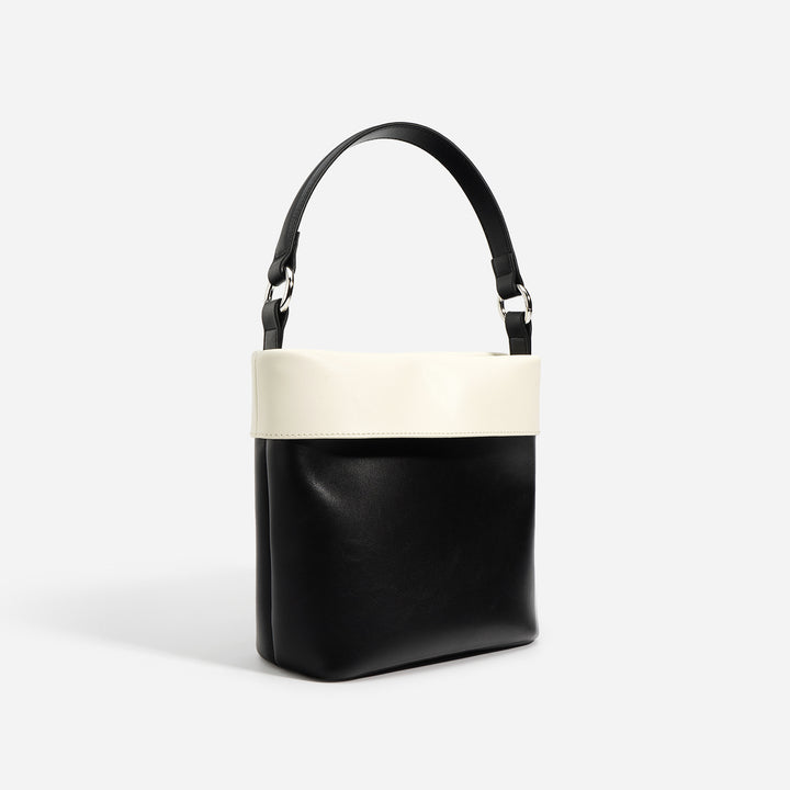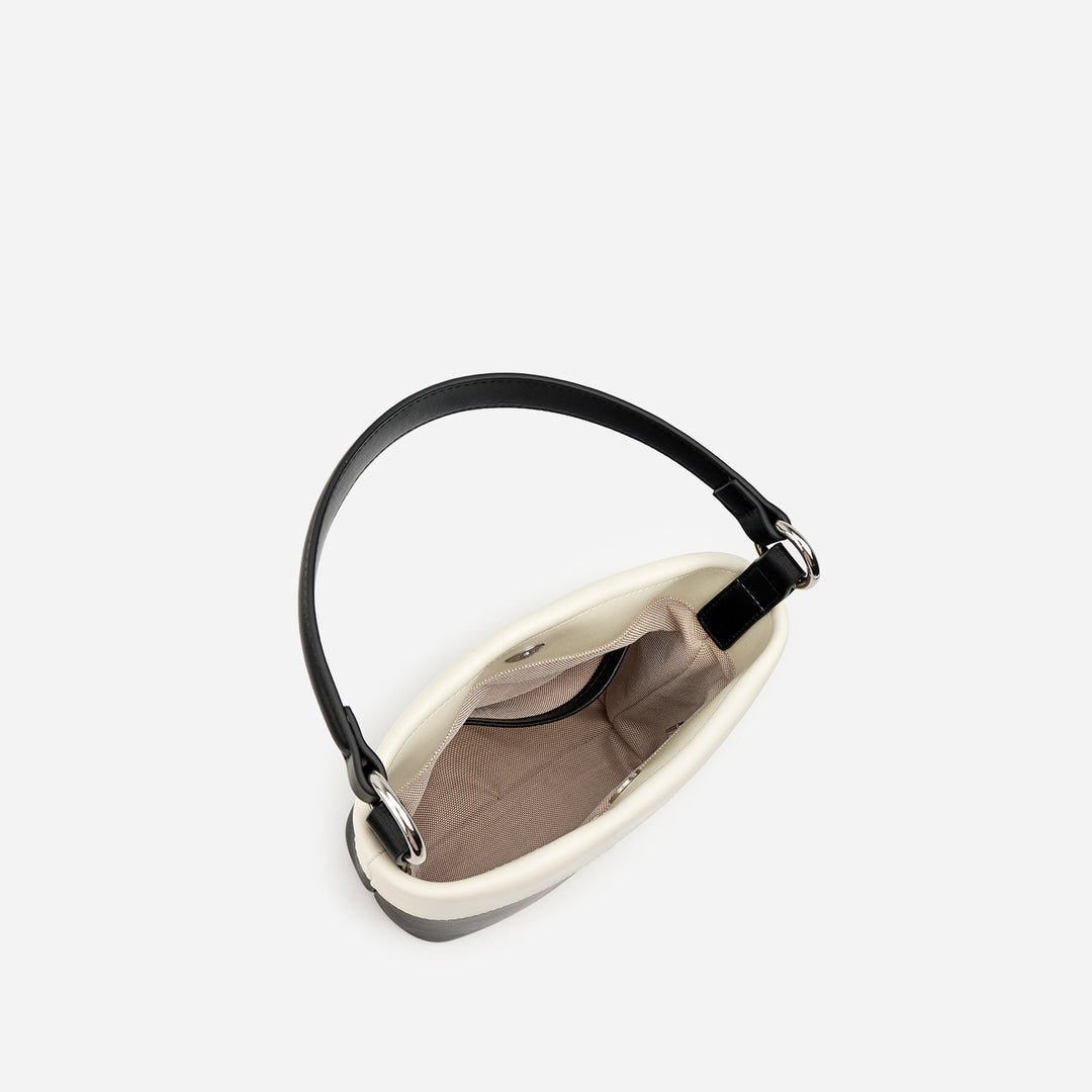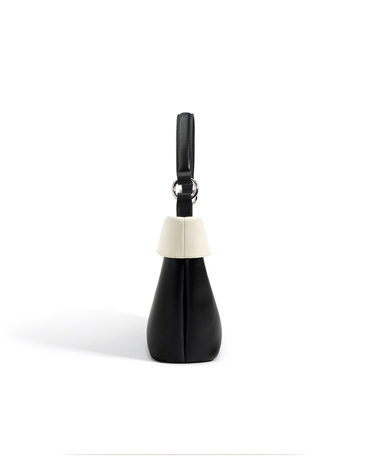 Un sac triangulaire au design unique fabriqué en cuir synthétique doux, avec un design sculpté et une poignée supérieure matelassée nouée aux deux extrémités. Son design compact et attrayant ajoute une touche artistique. Il est accentué avec des ferrures dorées et une fermeture magnétique pour plus d'élégance.