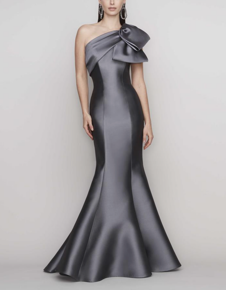 One-shoulder mermaid gown with sculpted satin bow – STORM