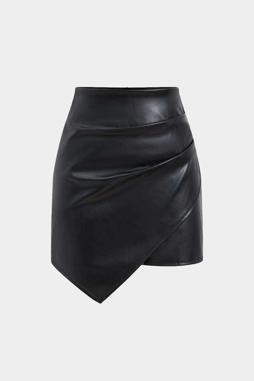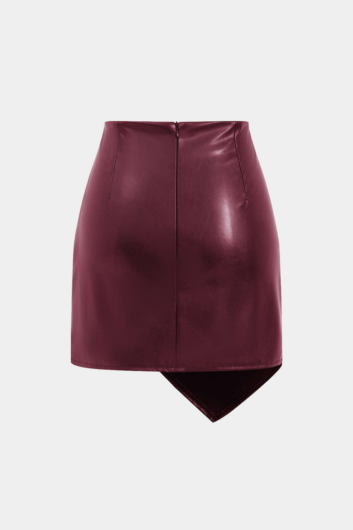 Asymmetrical Faux Leather Ruched Skirt