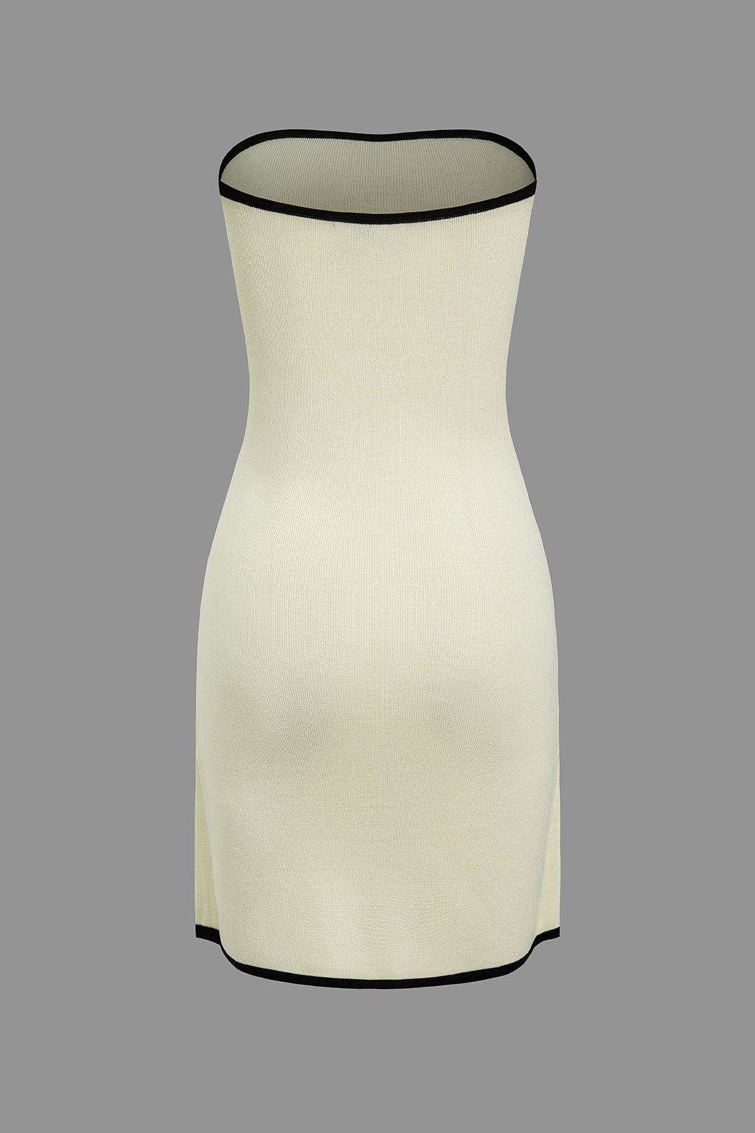 Contrast Trim Knit Tie Front Strapless Mini Dress