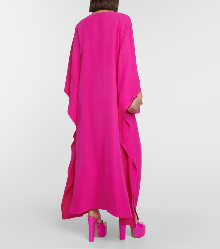 A bold fuchsia kaftan dress designed with a relaxed silhouette and soft draping. Featuring a V-neckline and asymmetrical hem, it exudes effortless glamour — perfect for summer soirées or elegant resort evenings.