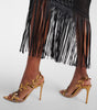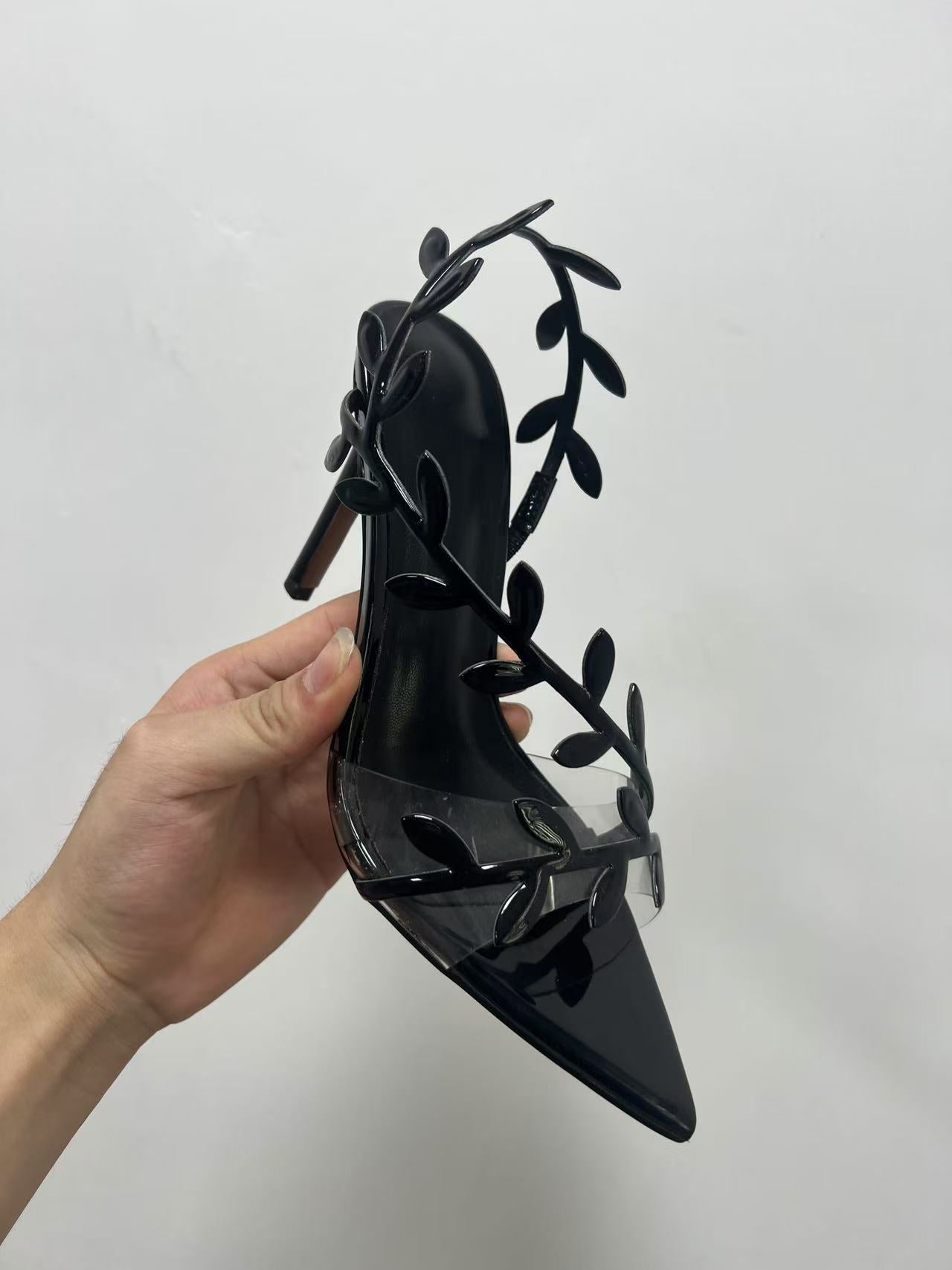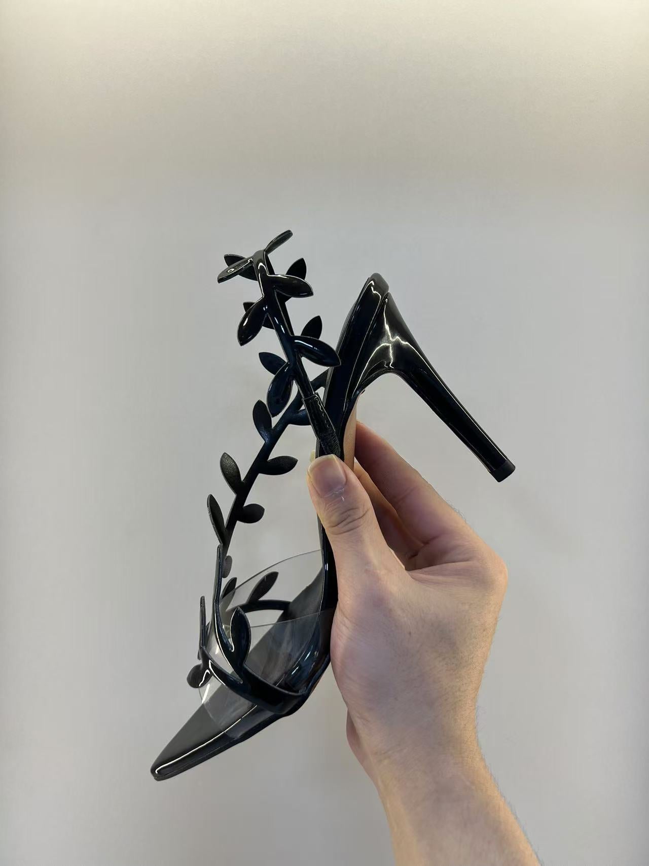 Cette élégante et sophistiquée chaussure à bout pointu est confectionnée en cuir verni noir brillant pour un look soigné. La caractéristique signature—une bordure en fourrure grise douce à l'avant—ajoute une touche luxueuse à ce design classique. Conçu avec un talon haut et élancé et une doublure douce de ton doré, ce soulier distinctif combine sans effort élégance et sophistication, que ce soit pour une tenue de soirée ou des occasions sophistiquées.