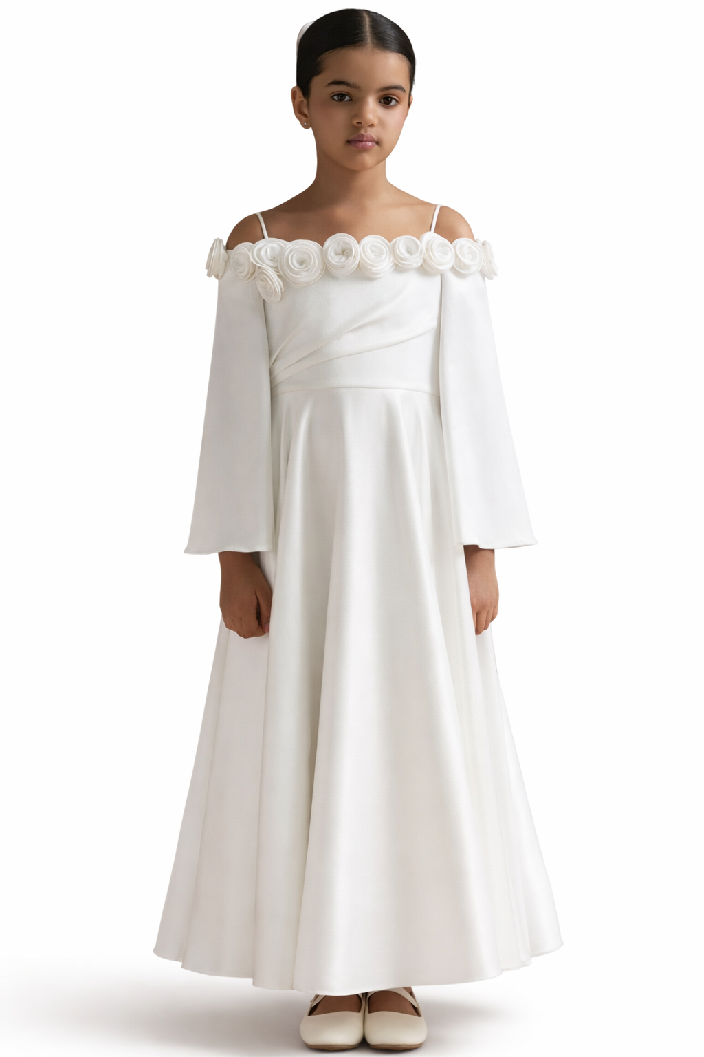 Off-Shoulder Maxi Dress with Rosette Neckline – ELARA
