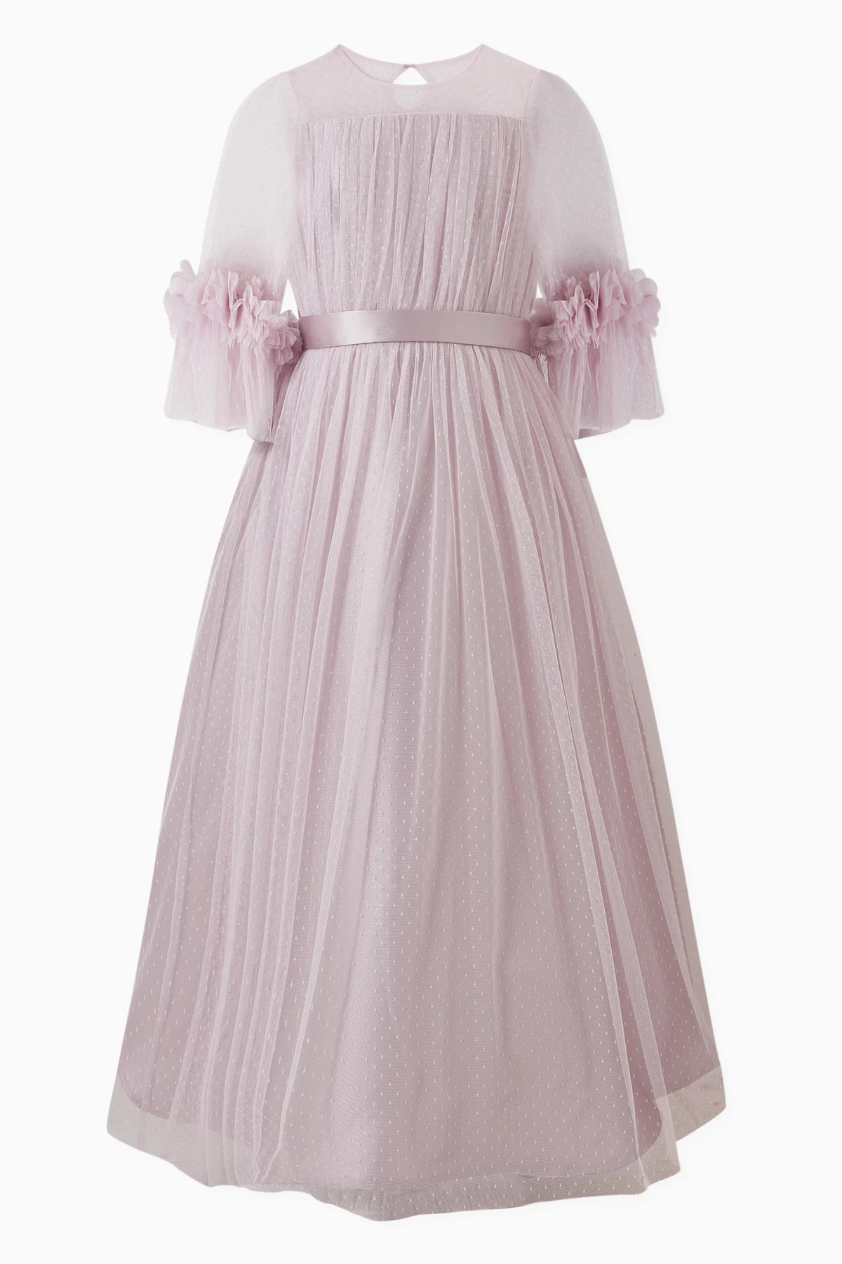 Pleated Tulle Midi Dress with Floral Sleeve Details – PETAL
