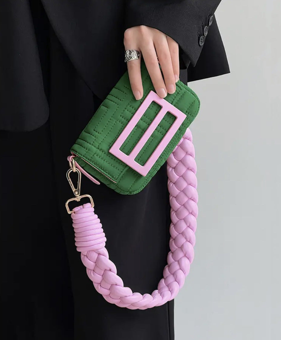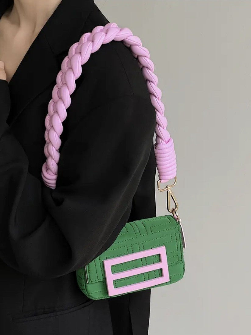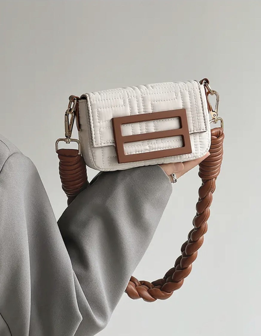 Een slanke en gebeeldhouwde halve maan schoudertas met een afneembare riem en een zacht, gebogen ontwerp. Gemaakt van glad leer met een veilige bovenritssluiting, voegt het een artistiek tintje toe.