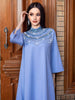 op maat gemaakte flare-pak met satijnen pofmouwen – VALENCIA
