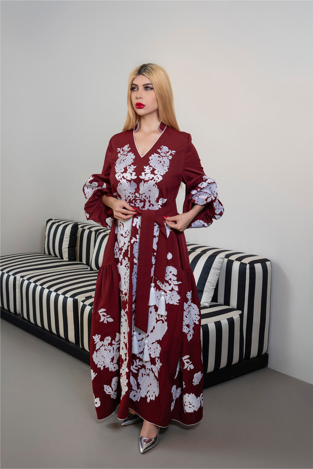 Embroidered Maxi Dress with Ruffled Sleeves – BORDEAUX
