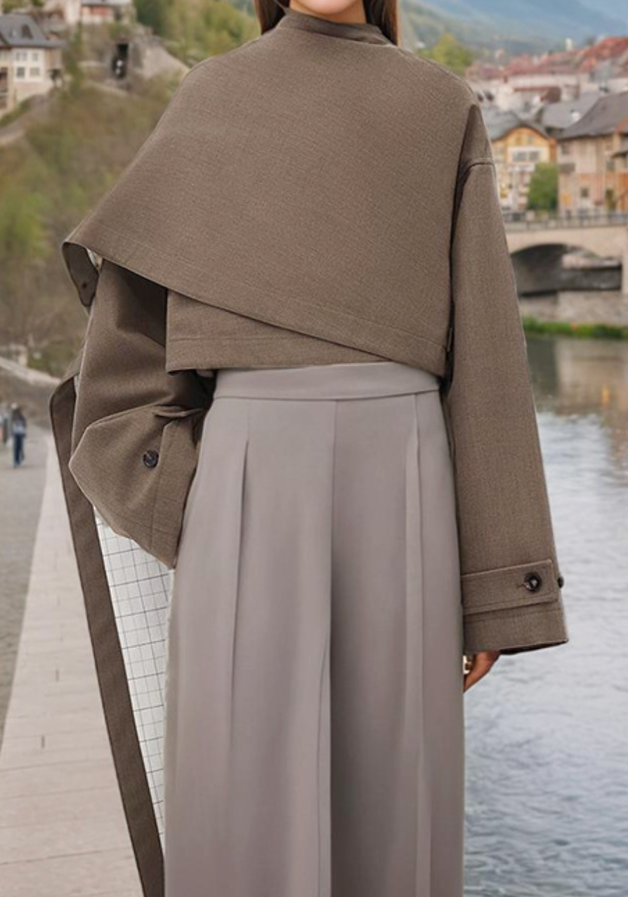 asymmetric cropped jacket with draped overlay – RHEA – missodd.com