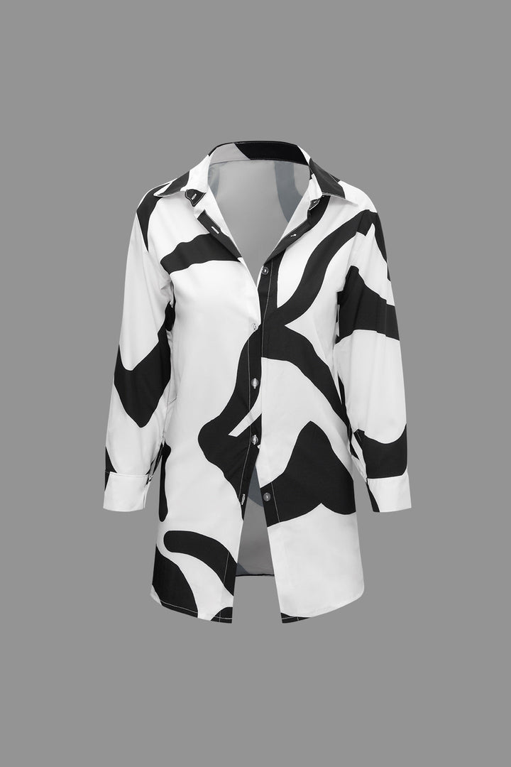 Line Print Button Up Shirt And High Waist Wide Leg Pants Set