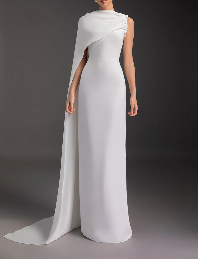 one-shoulder gown with draped cape – AURORA