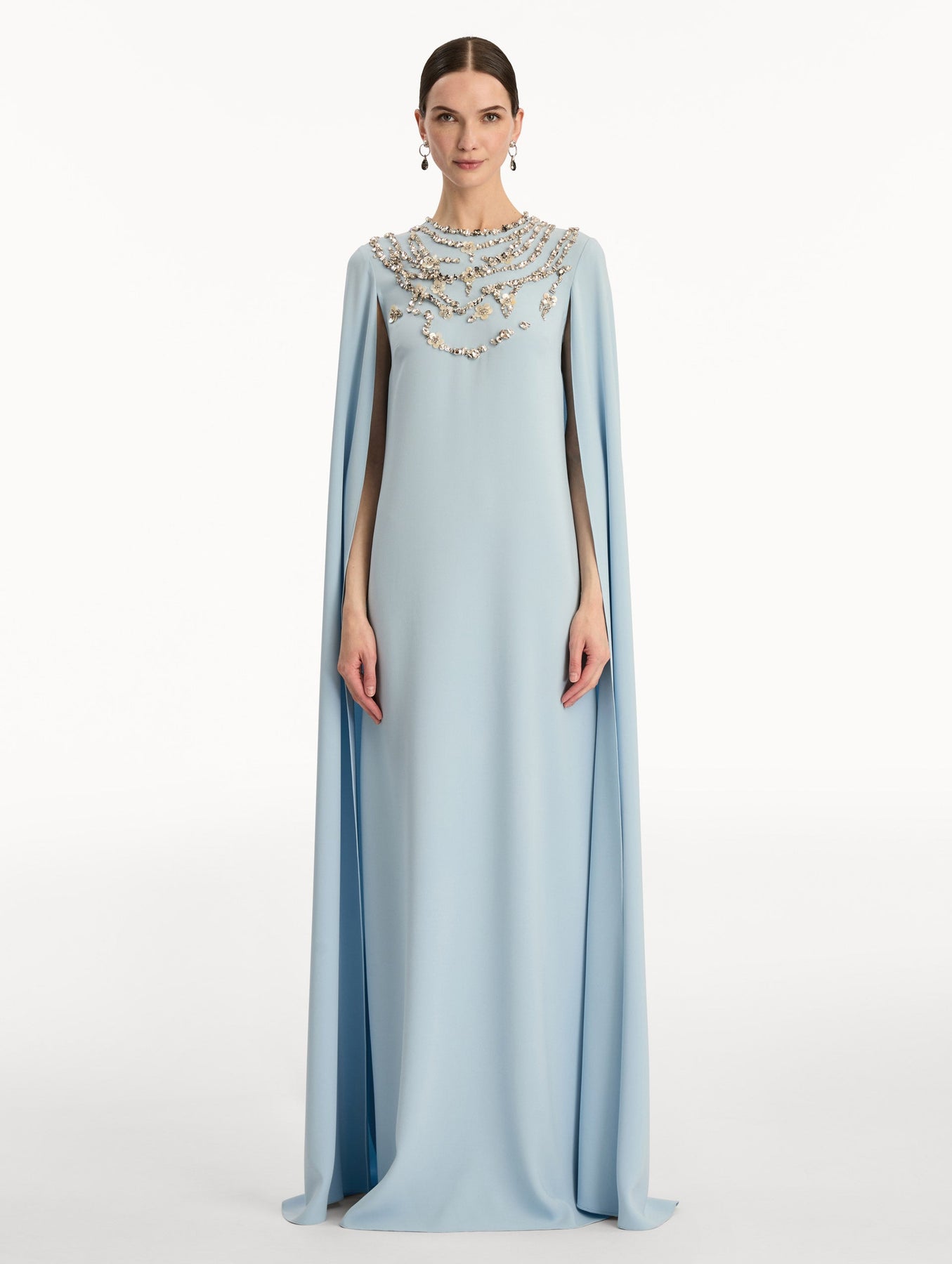 cape-sleeve gown with embellished neckline – AERIN