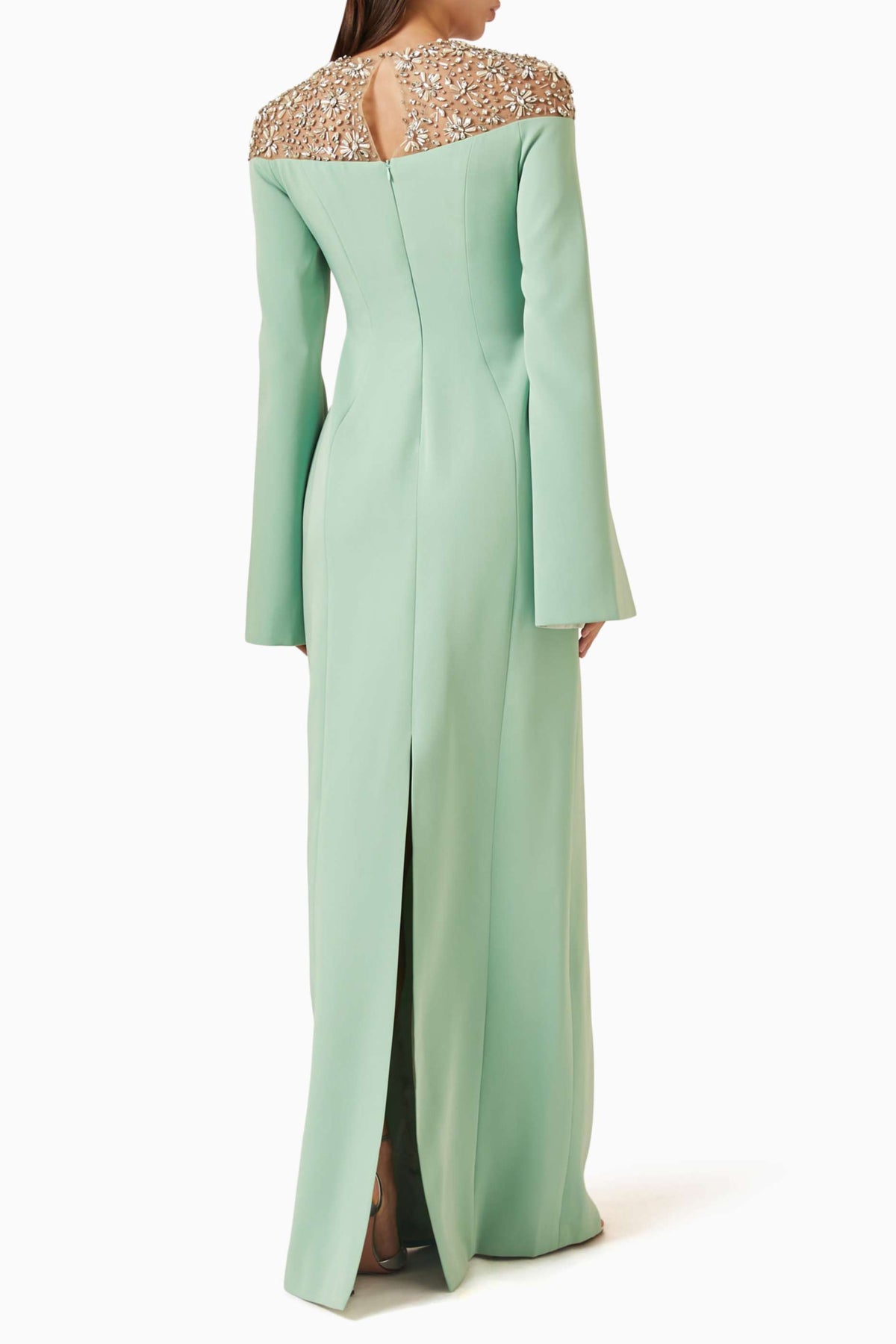 embellished cape-sleeve column gown – MINTA – missodd.com