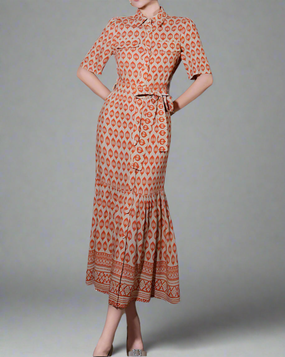 korte mouw midi jurk met 3D bloemenapplicaties - BLOOMIQ