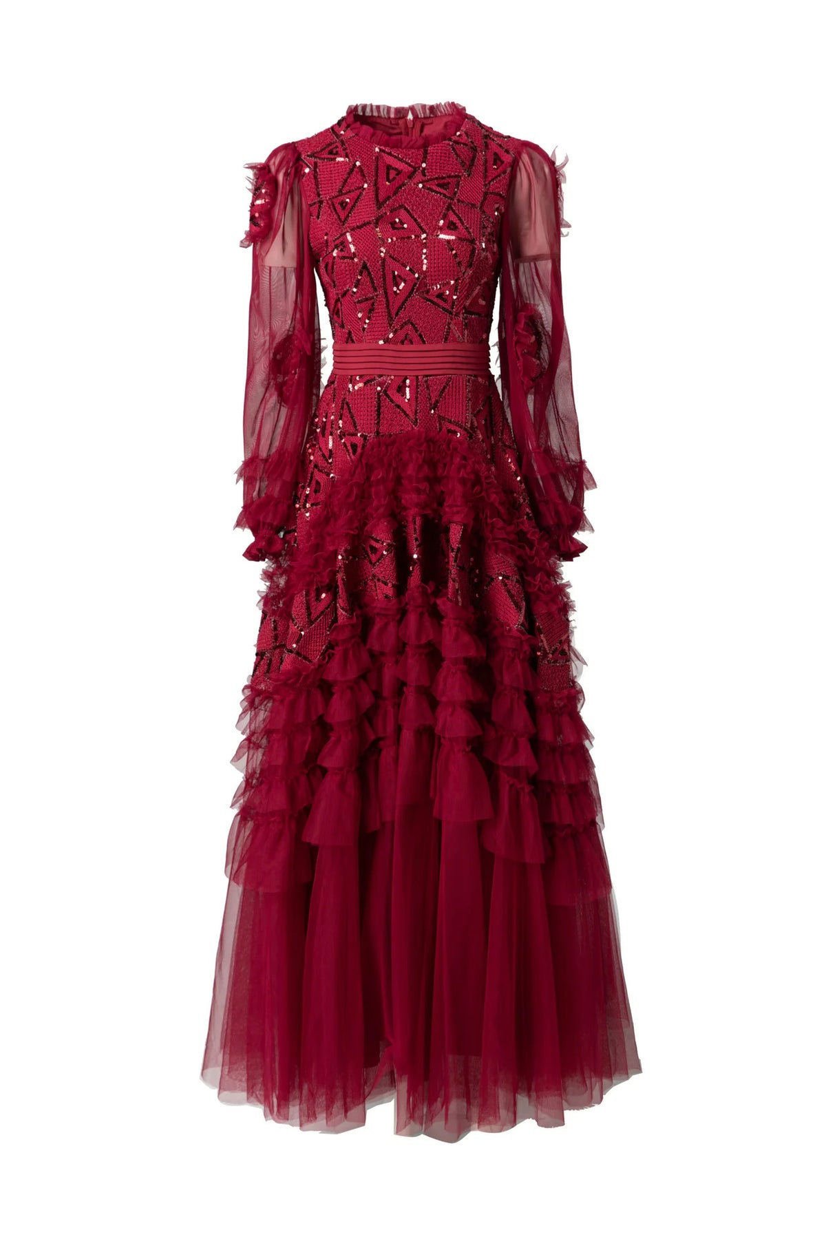 embroidered tulle gown with layered ruffle skirt – AURORA