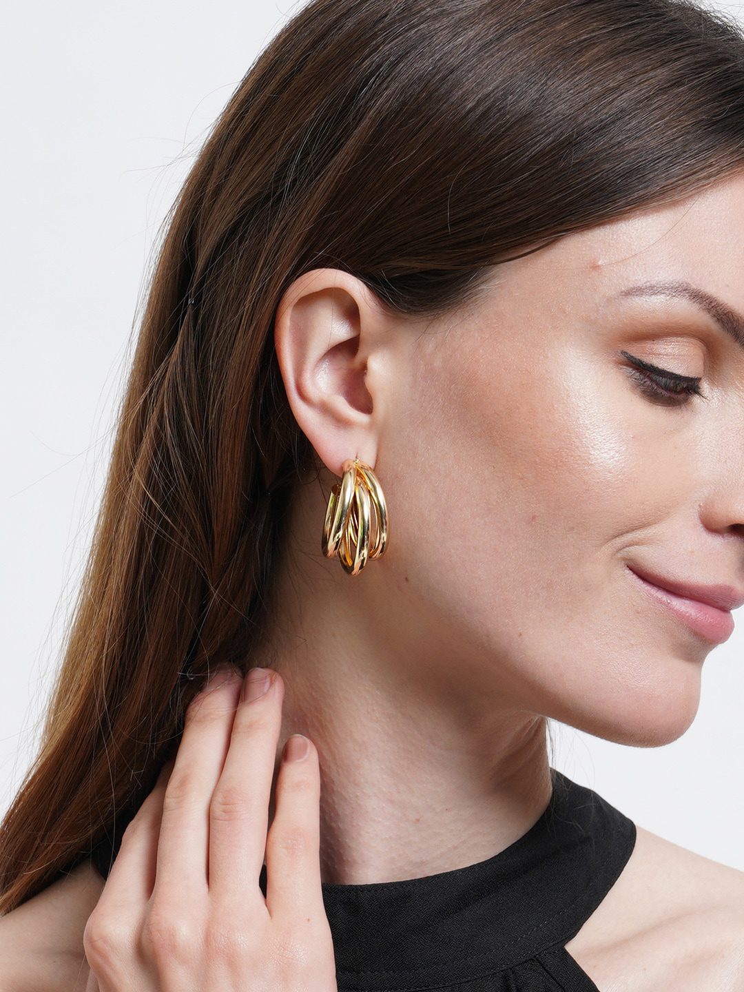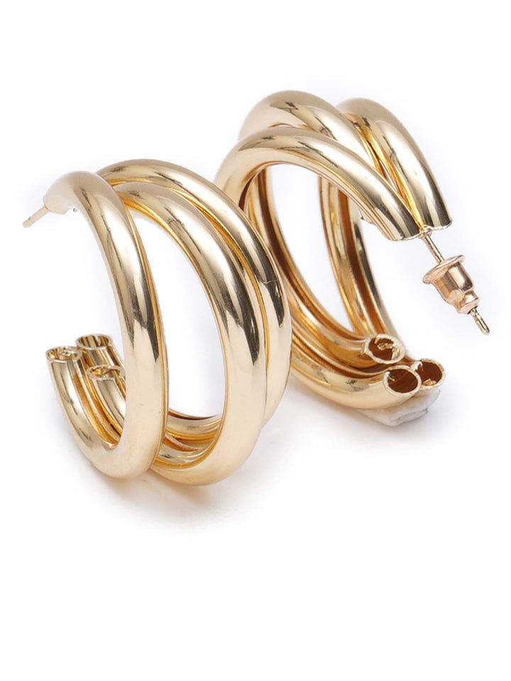 Double-dome hoop earrings feature two intertwined circular bands in a polished gold finish. Their chunky, elegant design strikes the perfect balance between bold and timeless, making them a versatile statement piece for both formal and casual occasions.