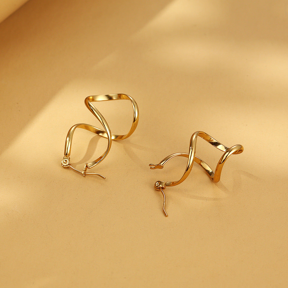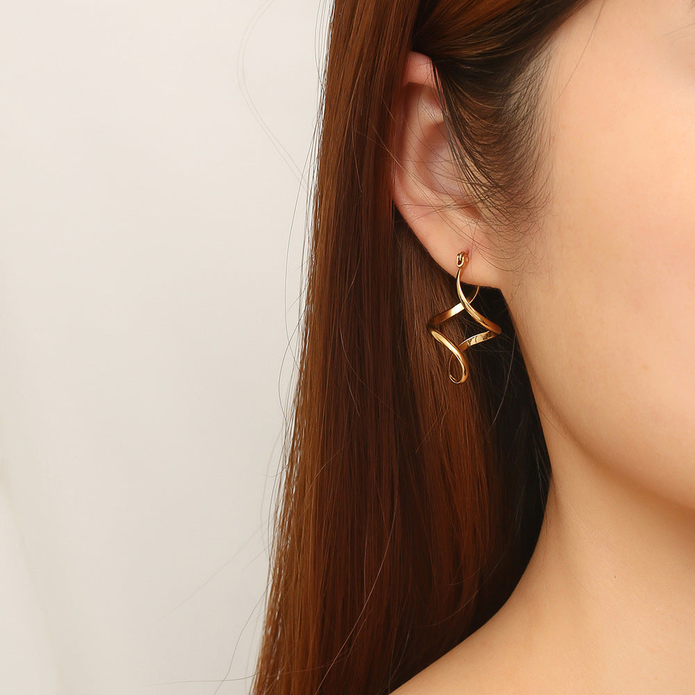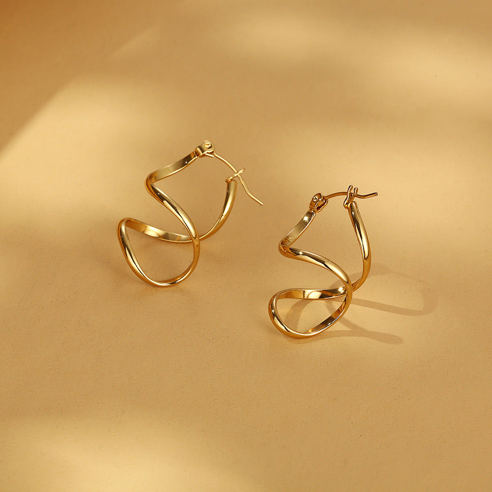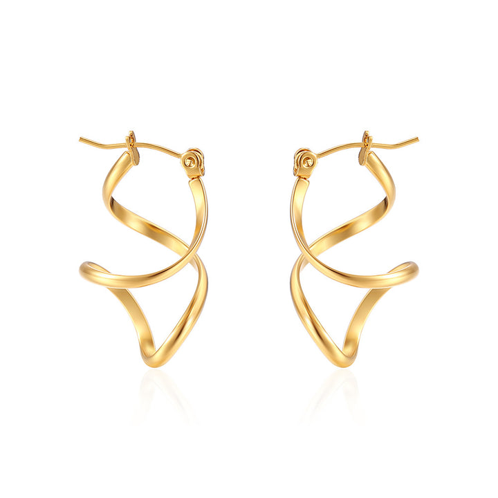 These eye-catching spiral hoop earrings feature a bold twisted design with a high-polish gold finish, creating a sculptural statement perfect for modern, elegant styling. Lightweight yet impactful, they’re ideal for adding a contemporary touch to both day and evening looks.