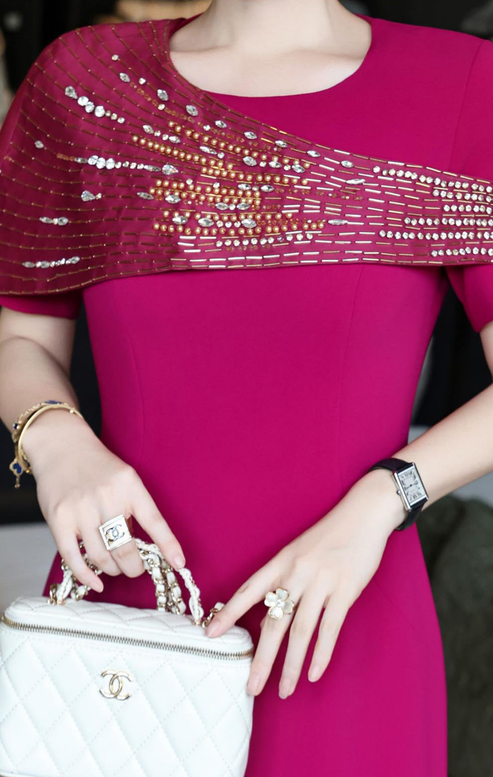 An elegant wine-red evening gown featuring a sculpted silhouette and a shimmering draped sequin shoulder overlay that adds refined glamour. Designed with a smooth, floor-length finish that elongates the figure—perfect for formal dinners, receptions, and sophisticated nights out.