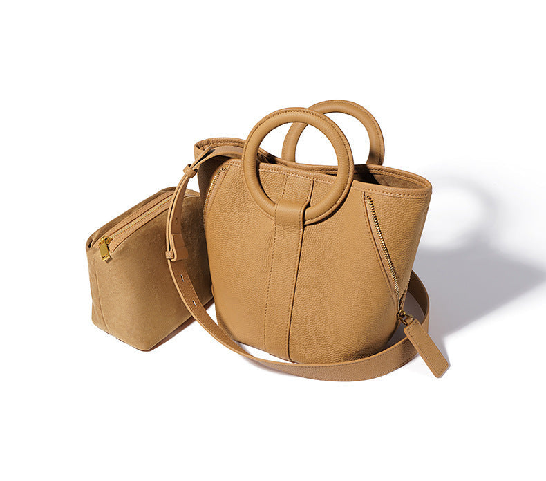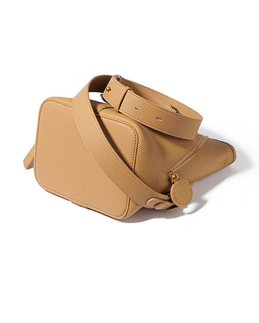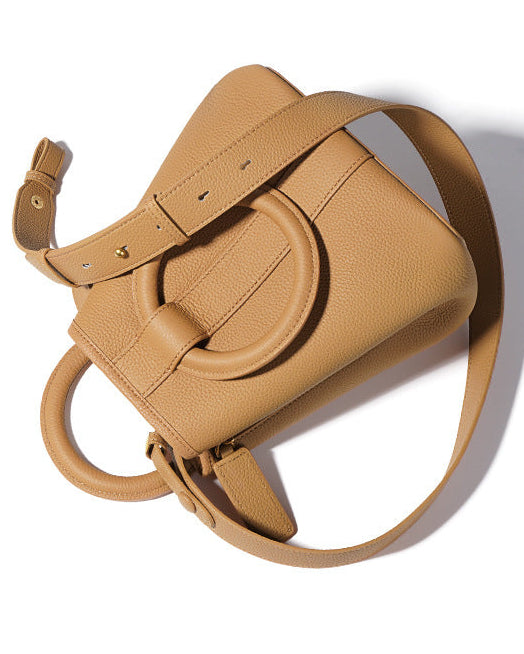 一款时尚且雕塑感十足的新月形肩包,配有可拆卸肩带和柔和弯曲的设计。由光滑的皮革制成,带有安全的顶部拉链闭合,增添了艺术气息。