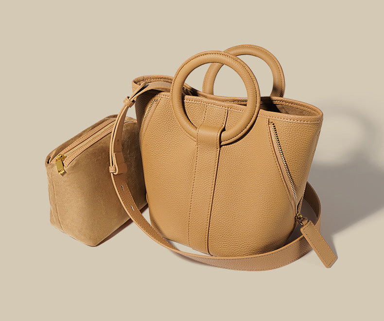 编织藤条手提包,配有双层皮革手柄 – LÉONIE