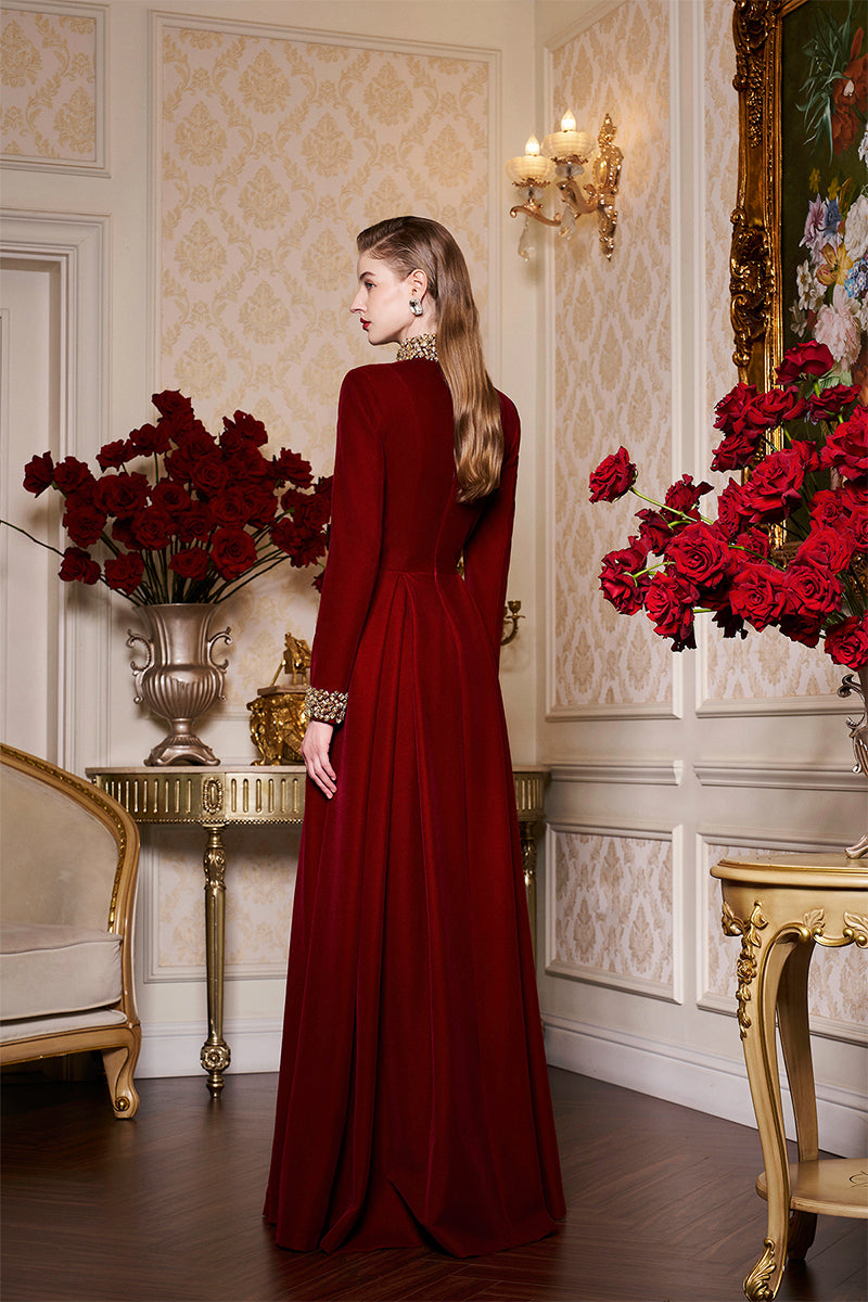 high-neck velvet gown with embellished cuffs – ROYALE – missodd.com