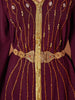 在这套火红色的西装中夺人眼球,特色包括雕塑般的不对称西装外套、宽腿喇叭裤以及肩部戏剧性的羽毛胸针装饰。是参加晚会、正式晚宴或红毯时刻的大胆宣言。