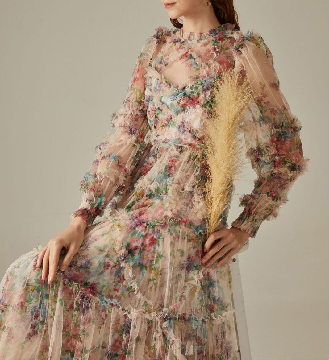 sheer floral tiered tulle gown – FIORELLA